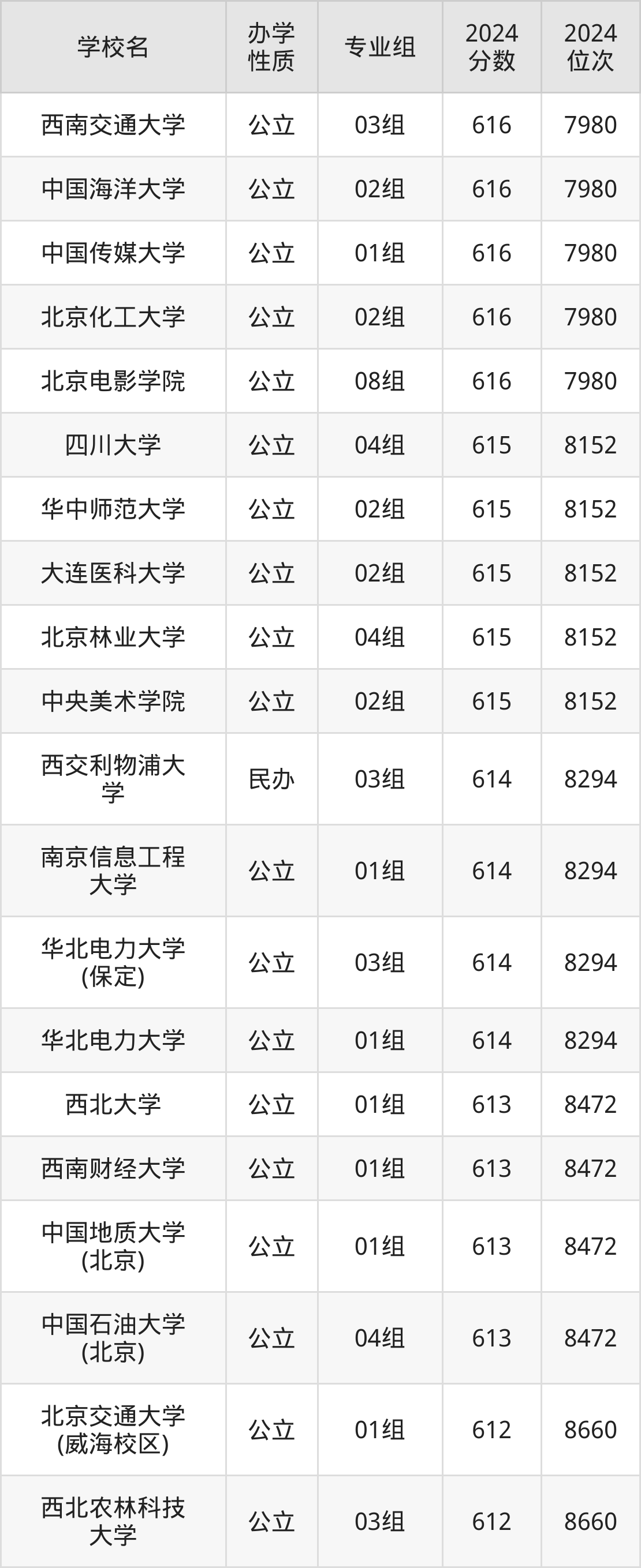 2024年北京611分考生能上西北农林科技大学、厦门大学、中国农业大学、东北大学、四川大学等6所985院校,具体录取分数线及位次为: