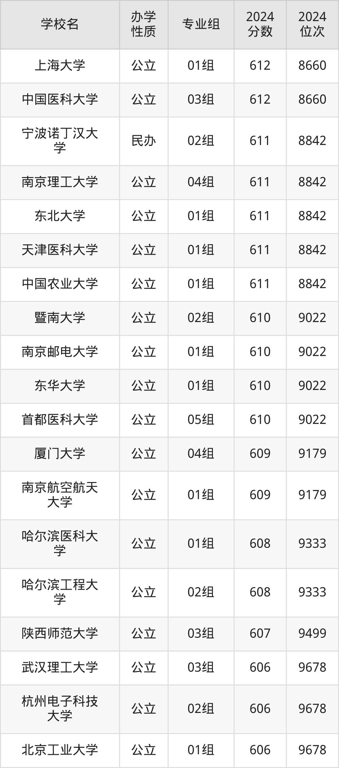 | 学校名 | 专业组 | 2024 分数 | 2024 位次 |