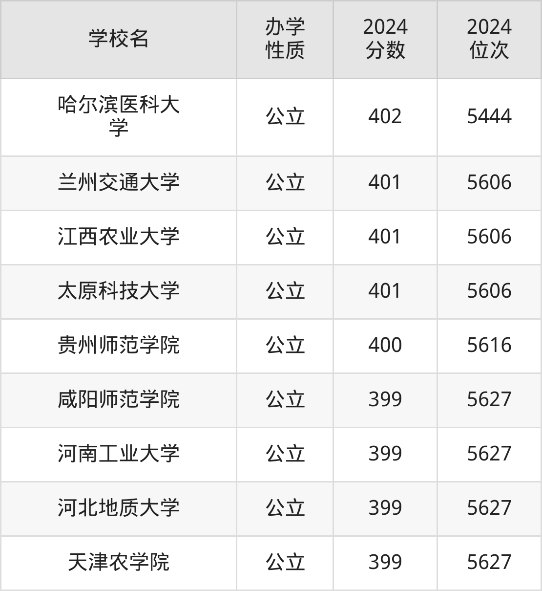 | 哈尔滨医科大 学 | 402 | 5444 |