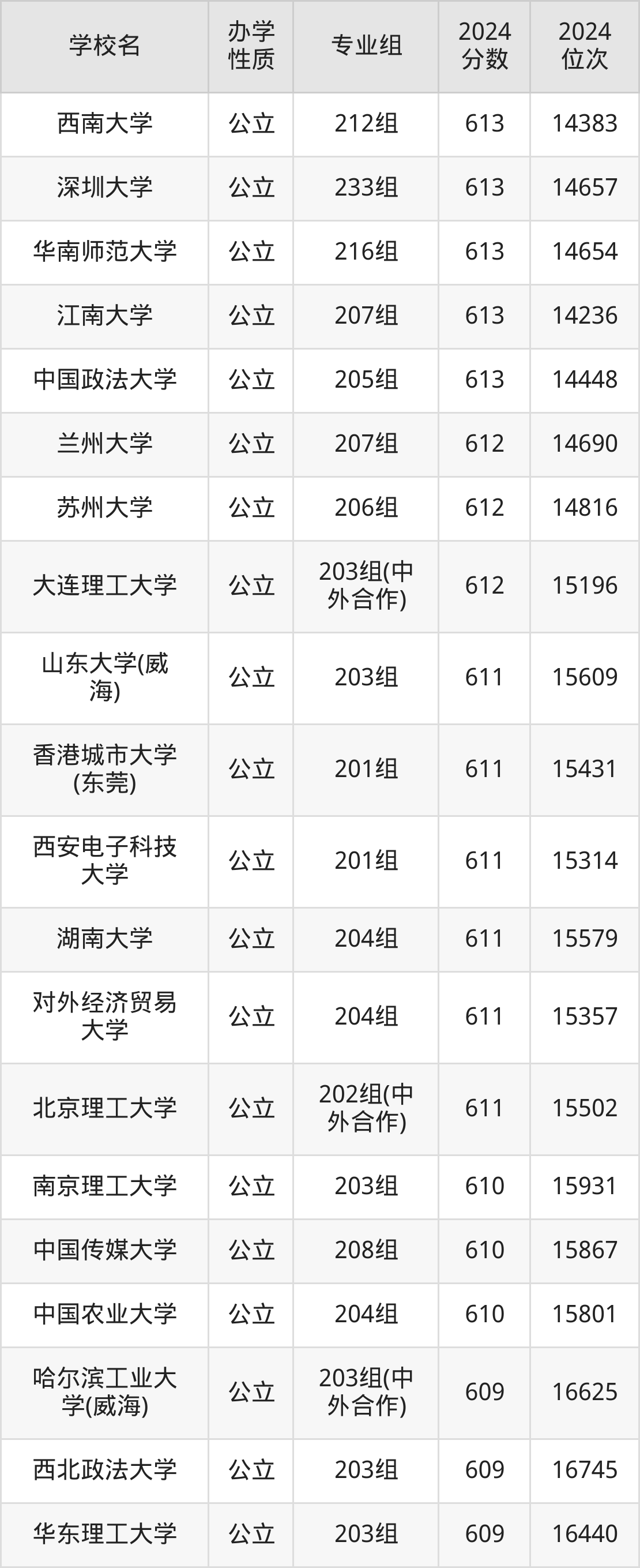 | 学校名 | 专业组 | 2024 分数 | 2024 位次 |