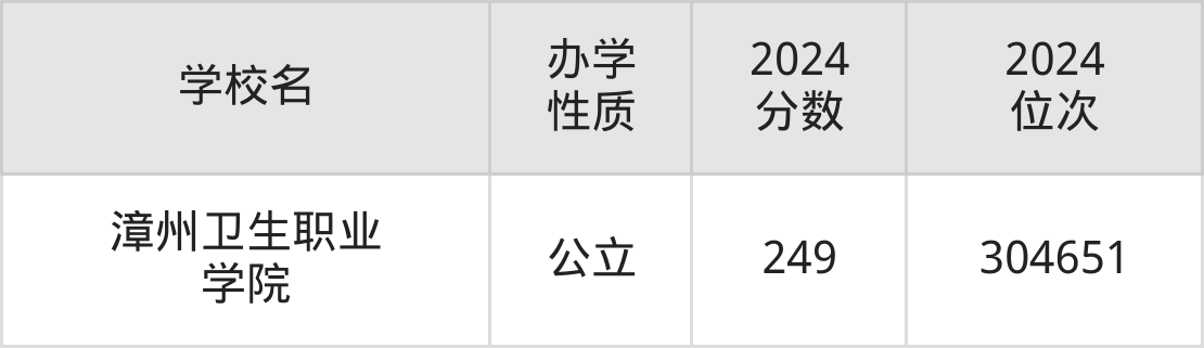 | 漳州卫生职业 学院 | 249 | 304651 |