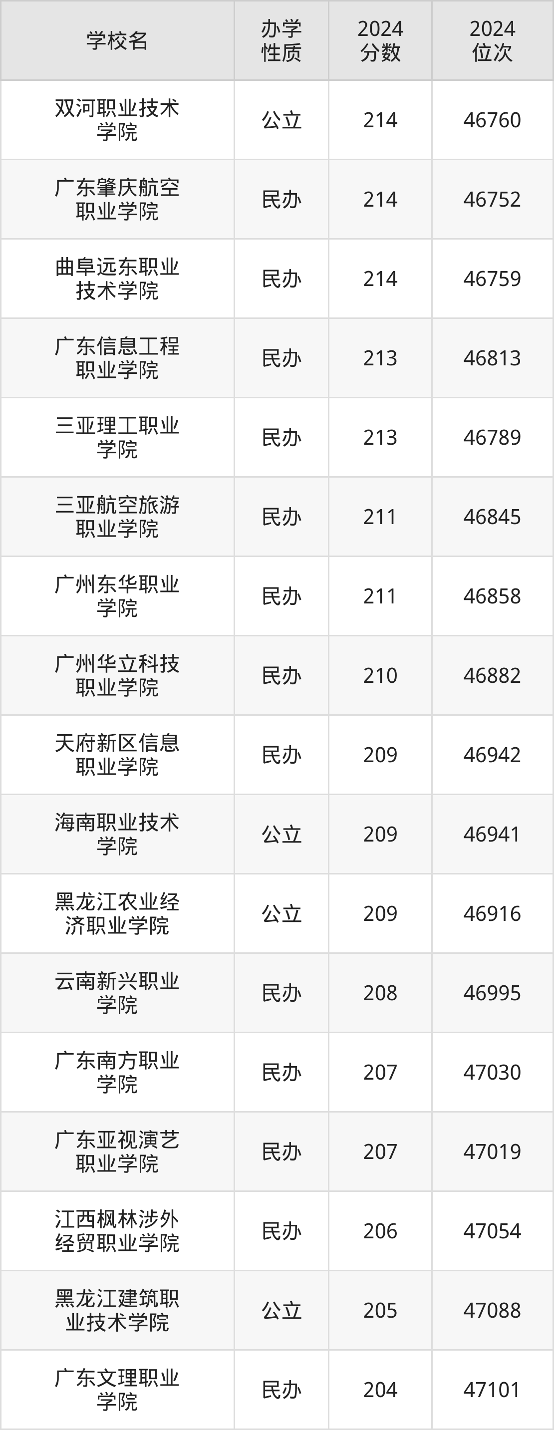 | 广东南方职业 学院 | 207 | 47030 |