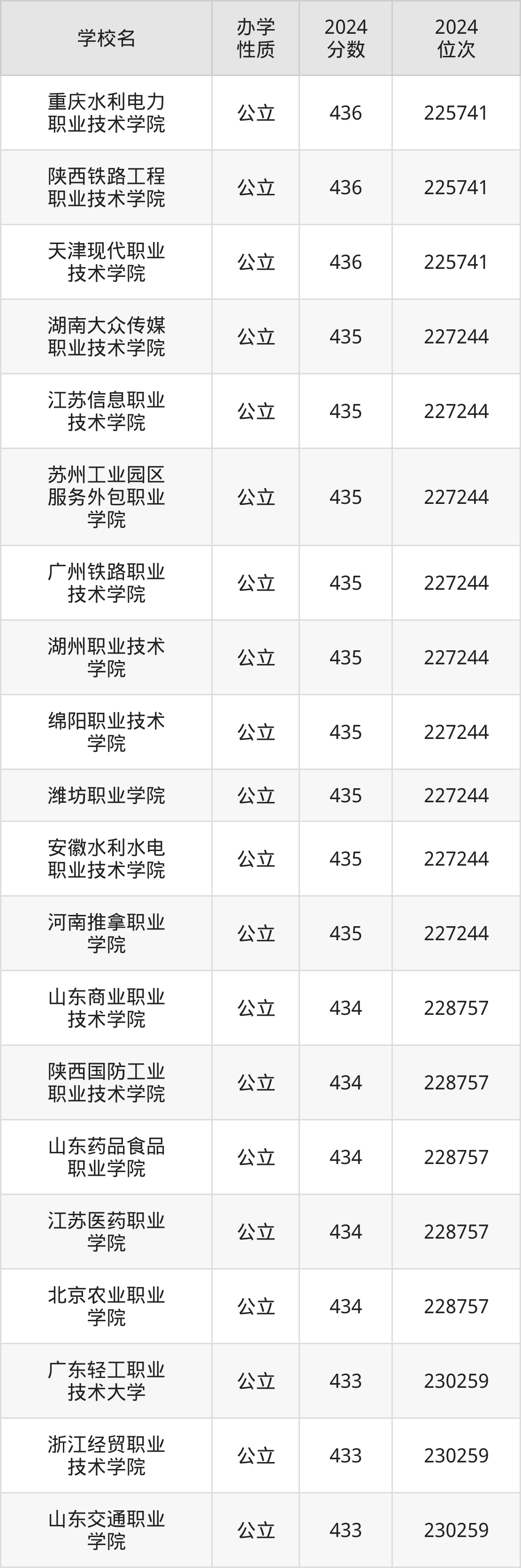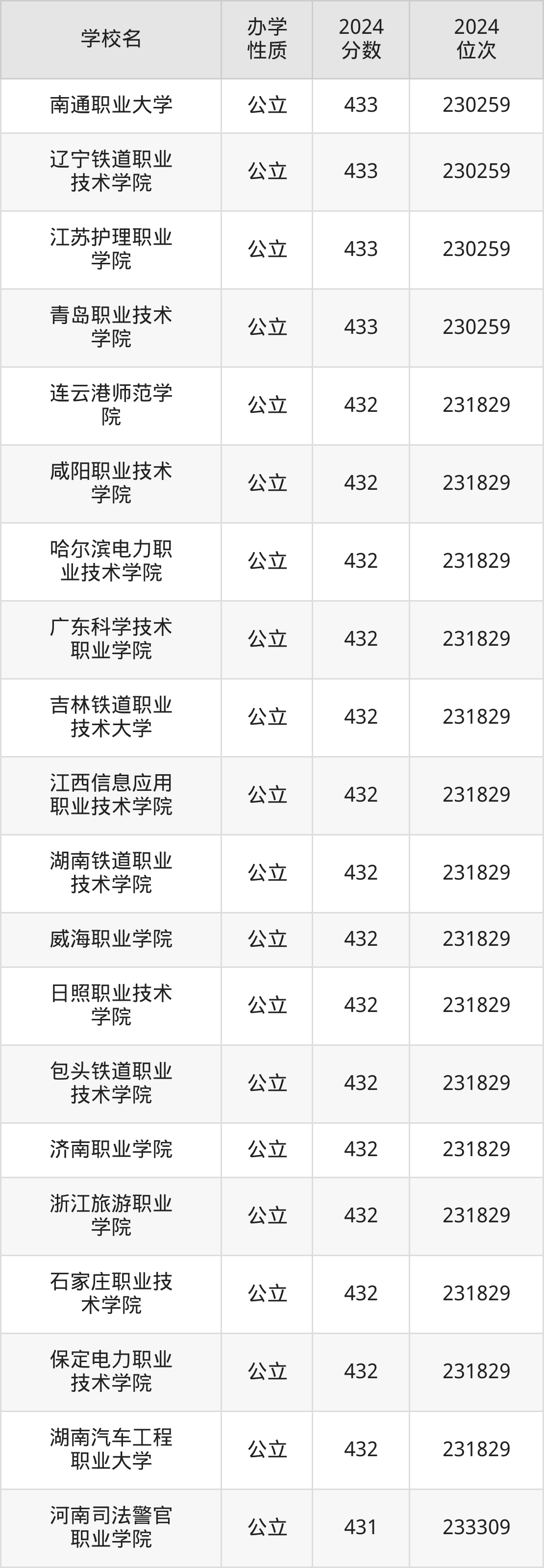 河北431分左右的考生可以上重庆水利电力职业技术学院、陕西铁路工程职业技术学院、天津现代职业技术学院等院校,刚好在431分的院校有河南司法警官职业学院、浙江建设职业技术学院、苏州工业职业技术学院等。