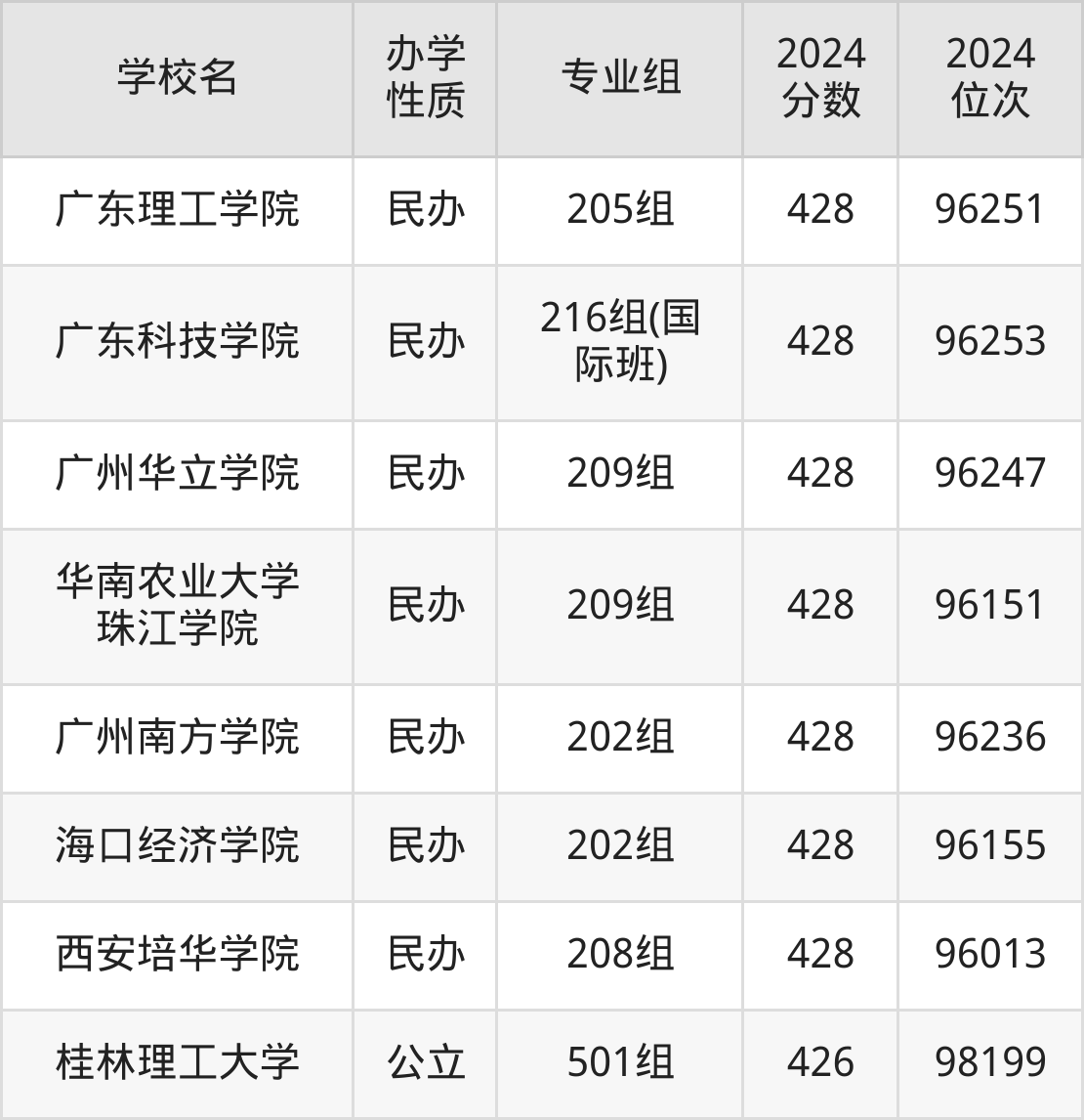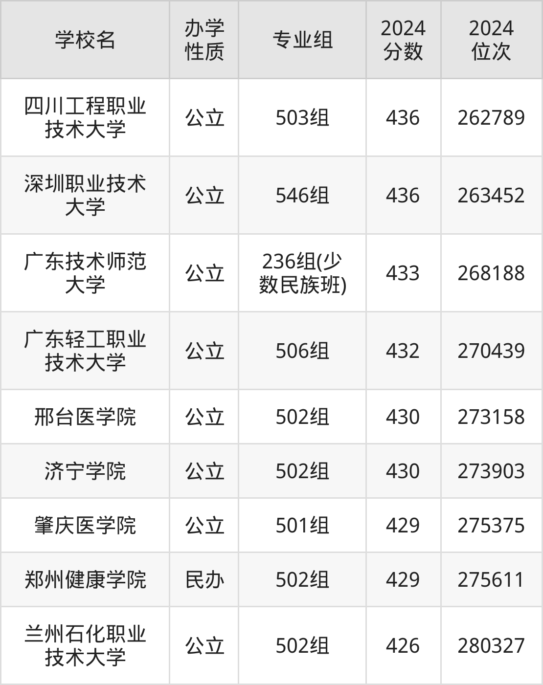 | 学校名 | 专业组 | 2024 分数 | 2024 位次 |