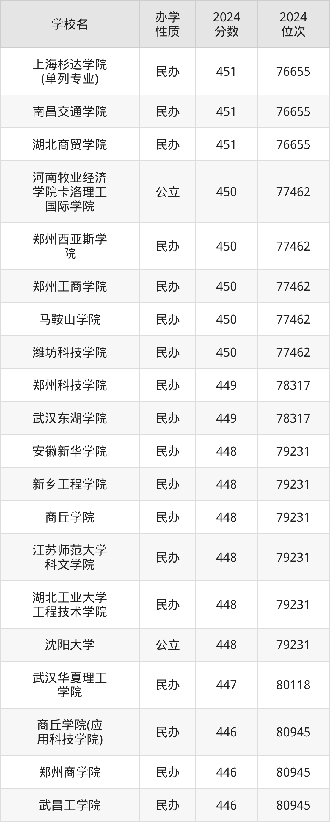 | 武汉华夏理工 学院 | 447 | 80118 |