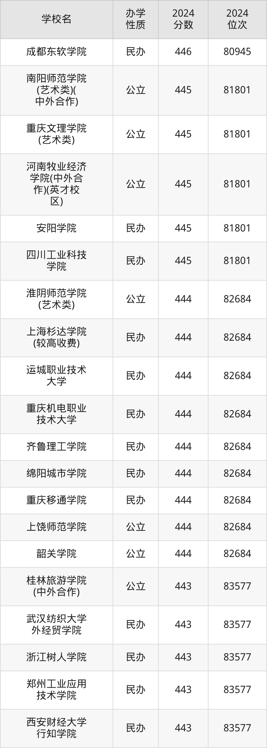 | 成都东软学院 | 446 | 80945 |