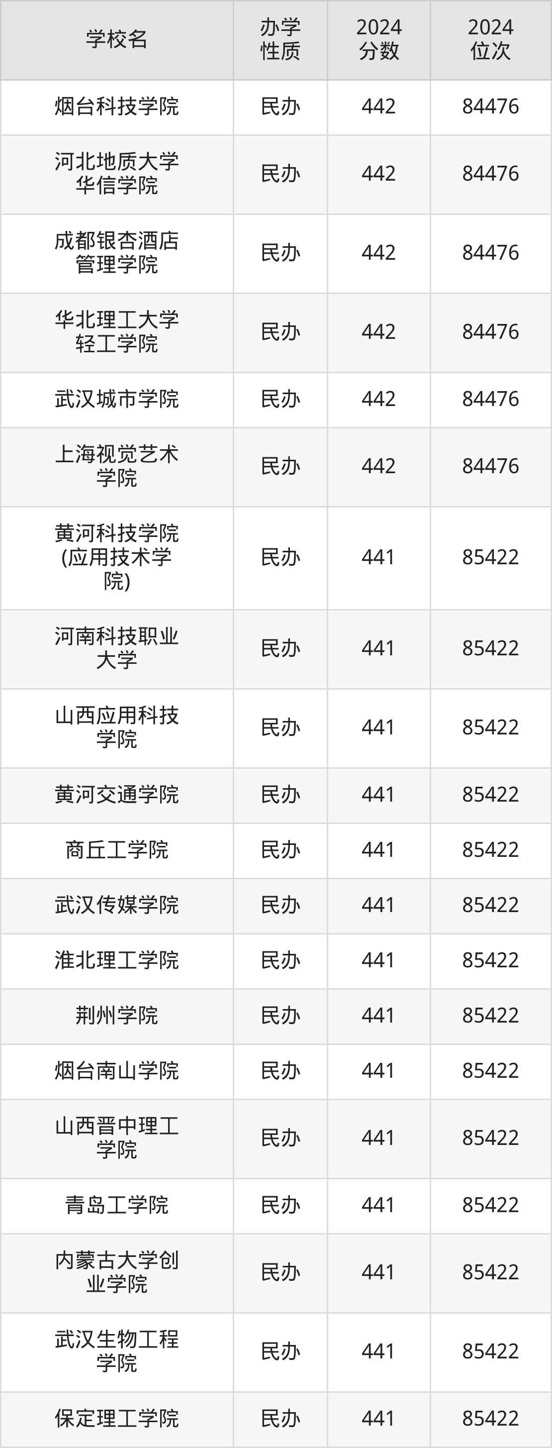 | 河北地质大学 华信学院 | 442 | 84476 |