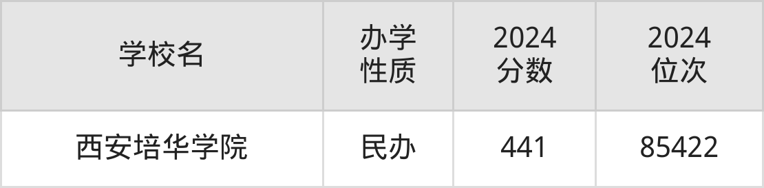 | 西安培华学院 | 441 | 85422 |