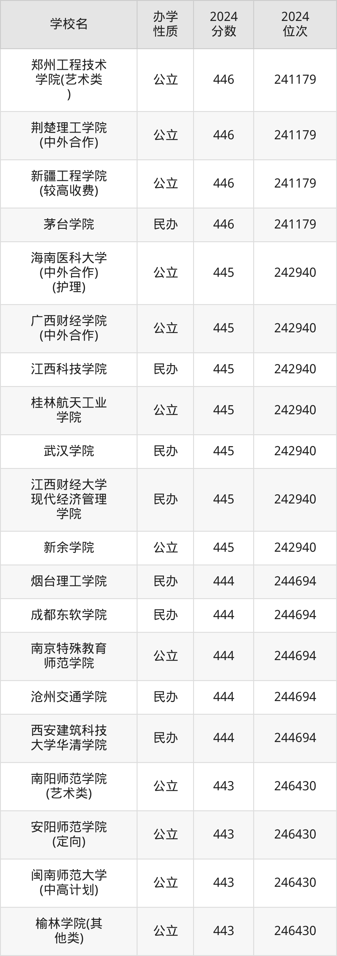 | 郑州工程技术 学院(艺术类 ) | 446 | 241179 |