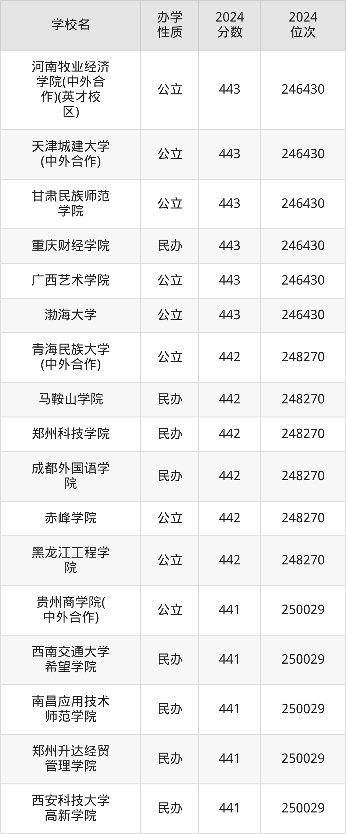 | 成都东软学院 | 444 | 244694 |