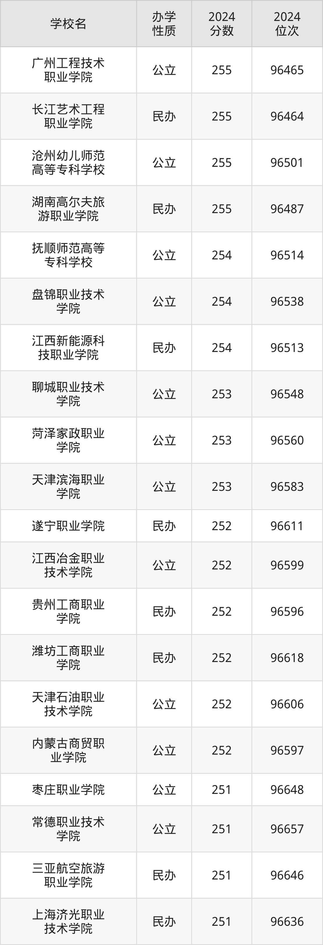 | 广州工程技术 职业学院 | 255 | 96465 |