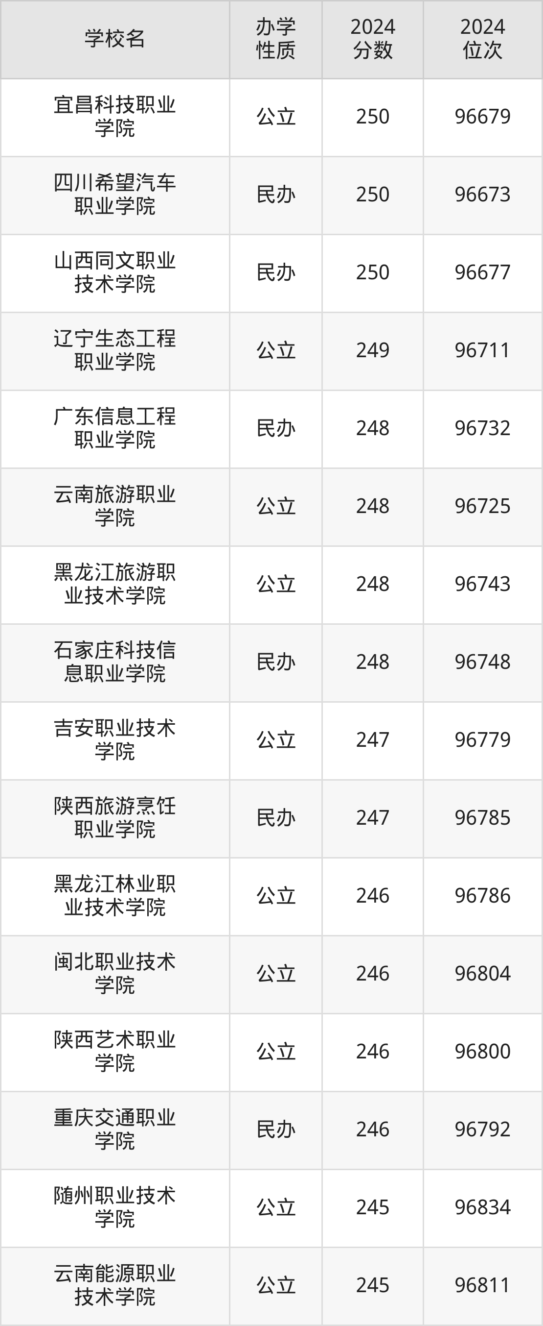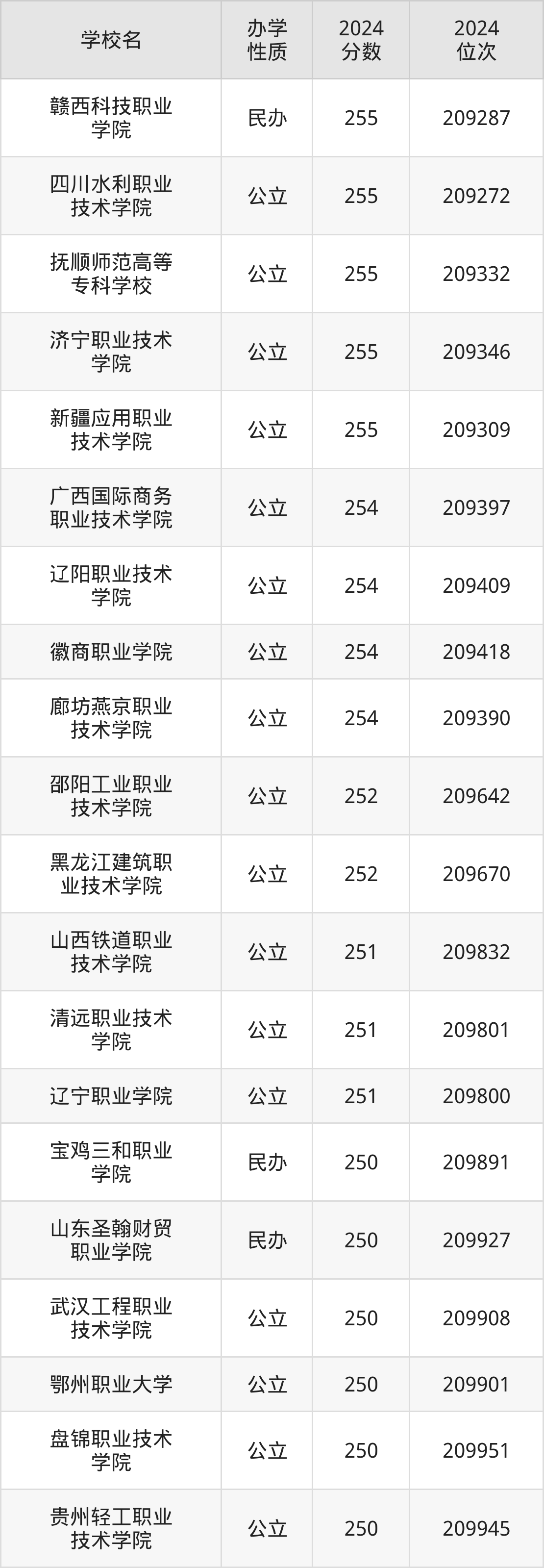 贵州省250分能上专科大学,比如赣西科技职业学院、四川水利职业技术学院、广州工程技术职业学院等,更多名单可以在下文了解。
