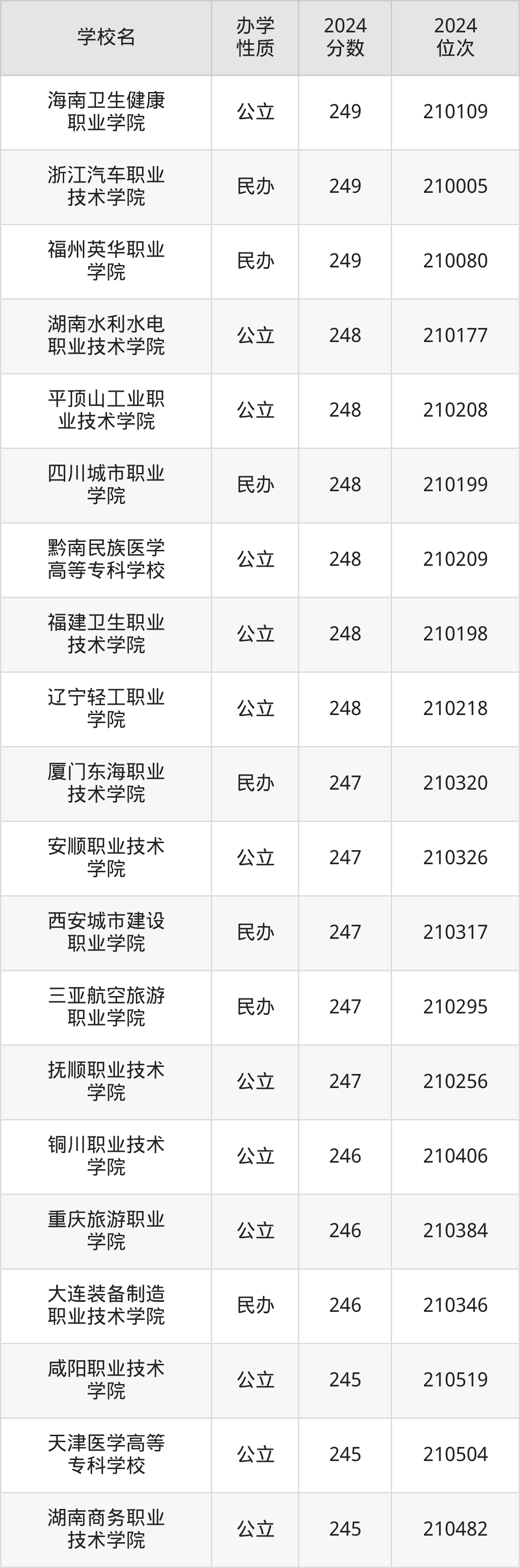 | 湖南水利水电 职业技术学院 | 248 | 210177 |