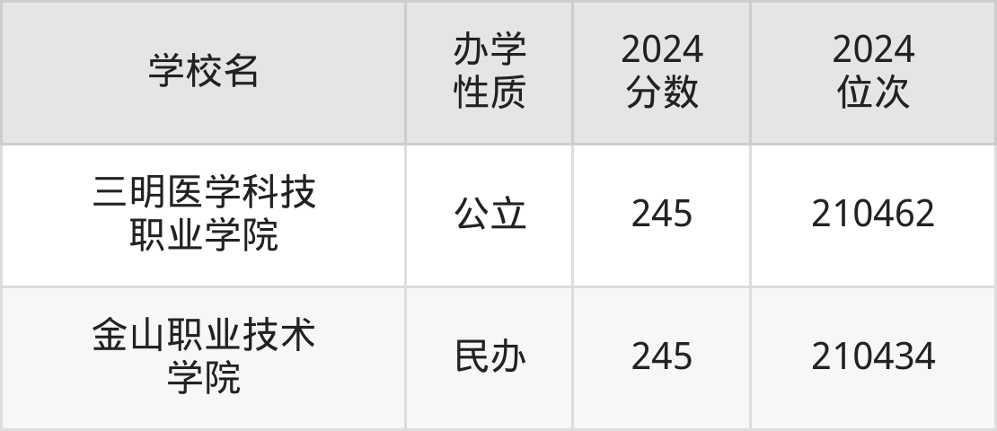 | 三明医学科技 职业学院 | 245 | 210462 |