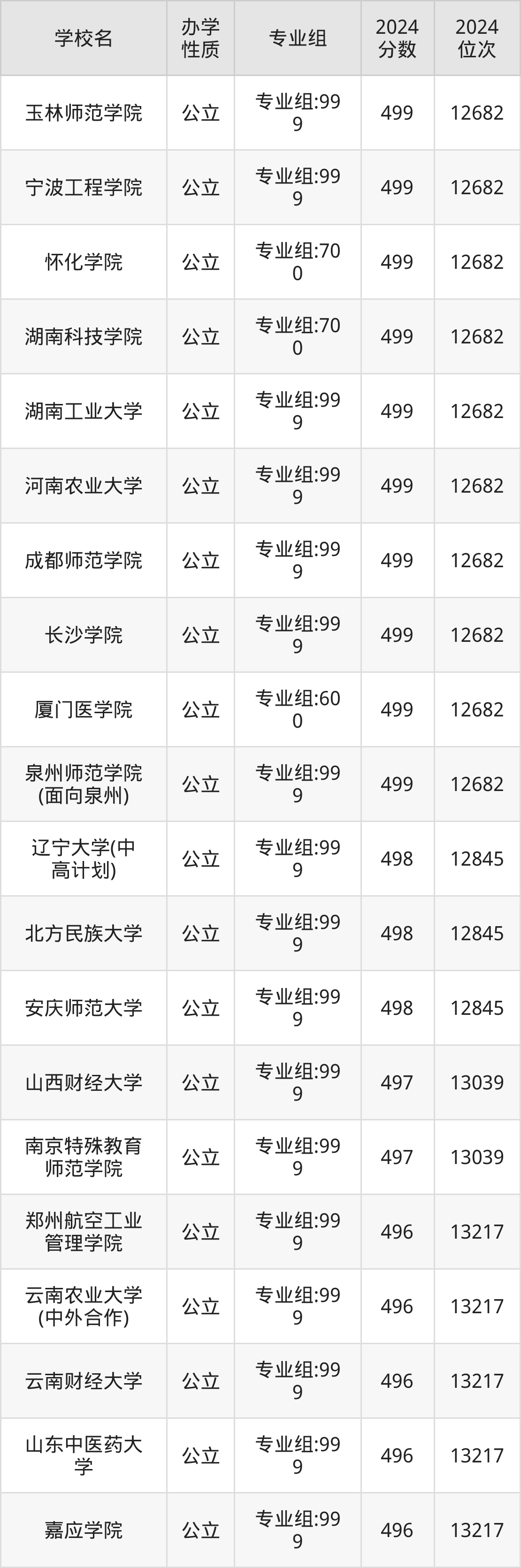 | 湖南科技学院 | 专业组:70 0 | 499 | 12682 |