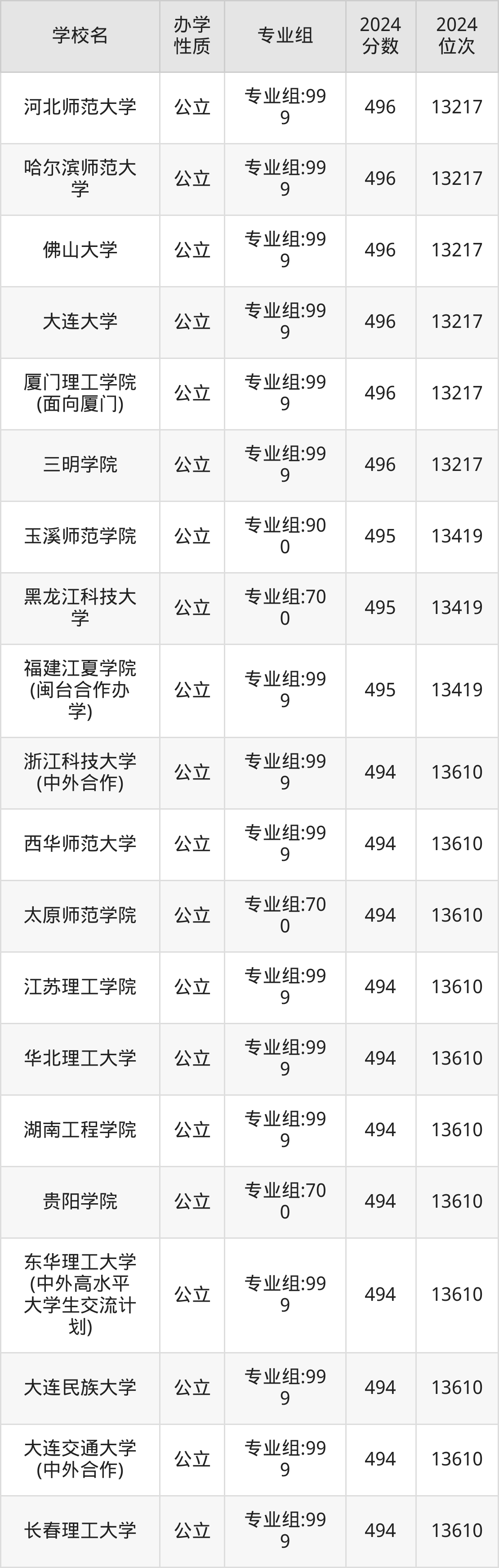 | 学校名 | 专业组 | 2024 分数 | 2024 位次 |