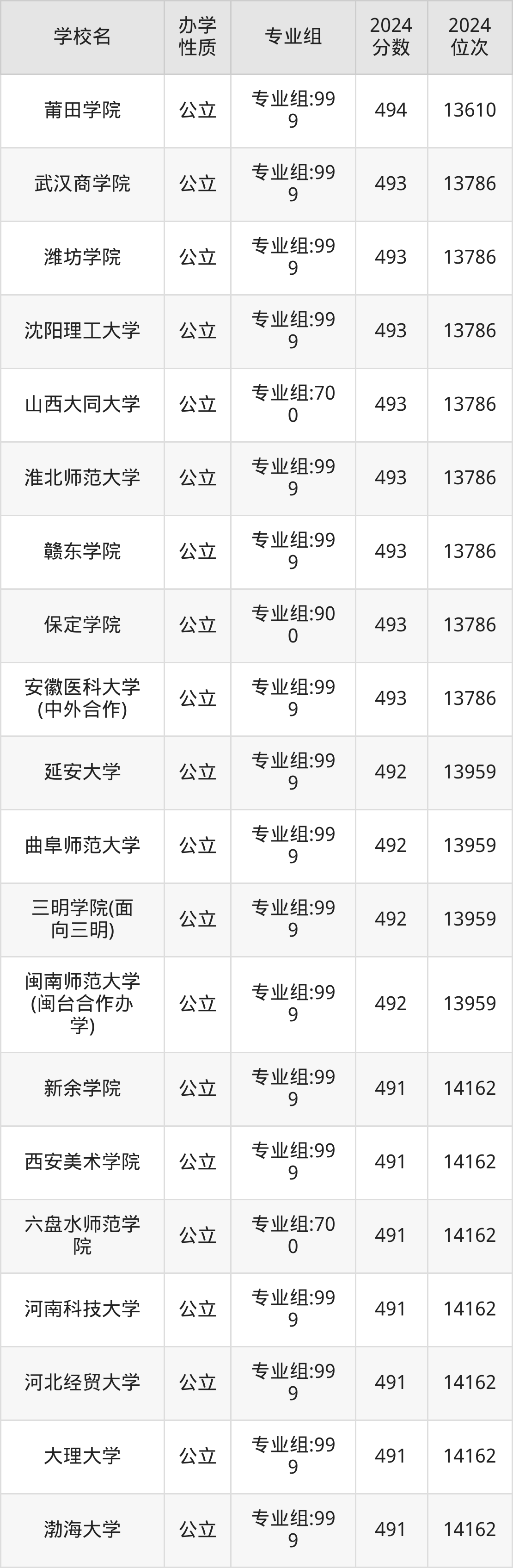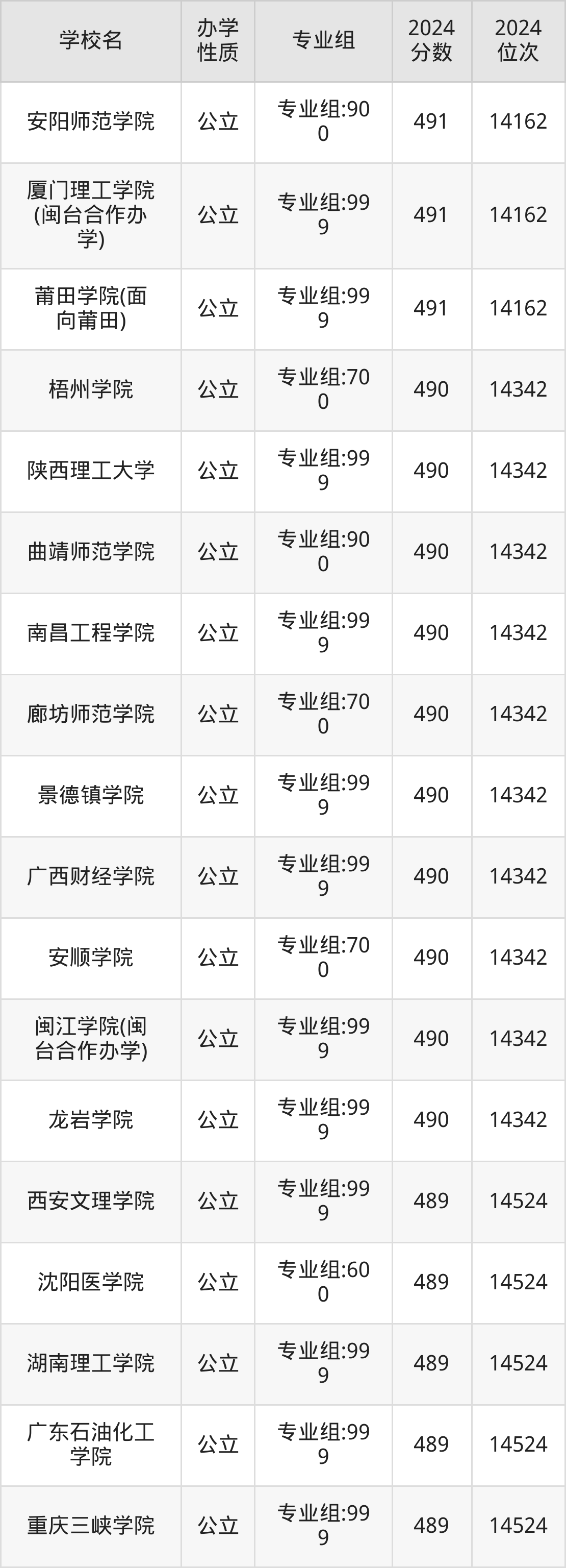 | 山西晋中理工 学院 | 专业组:50 0 | 491 | 80905 |