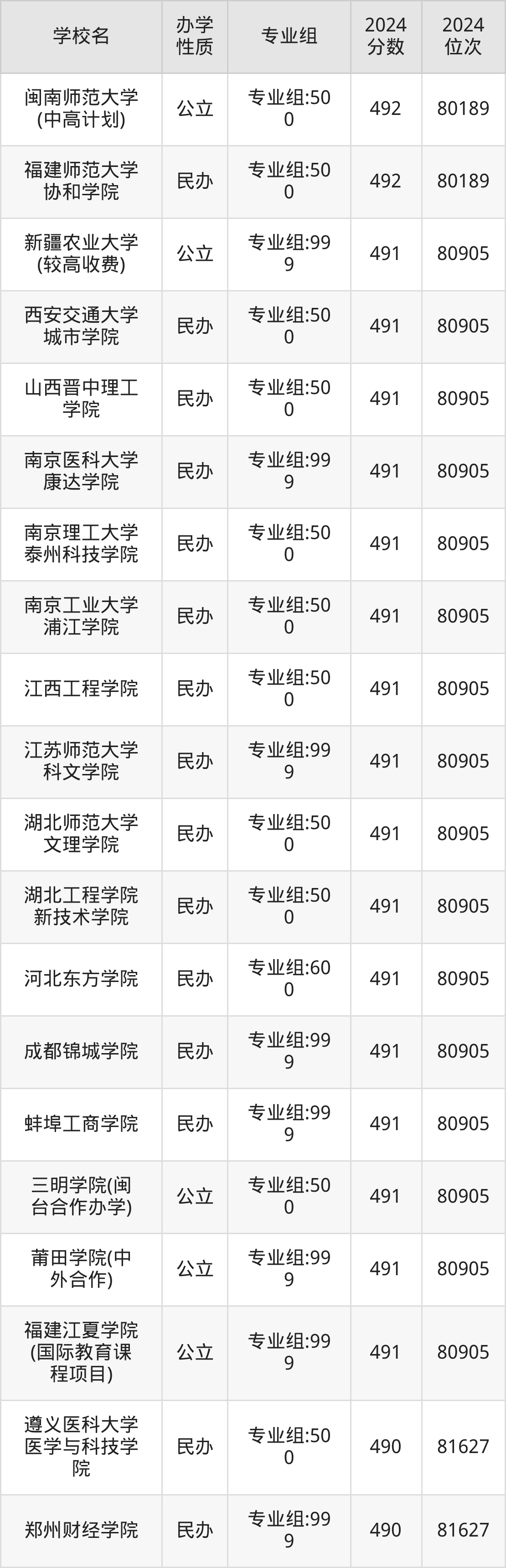 | 福建师范大学 协和学院 | 专业组:50 0 | 492 | 80189 |