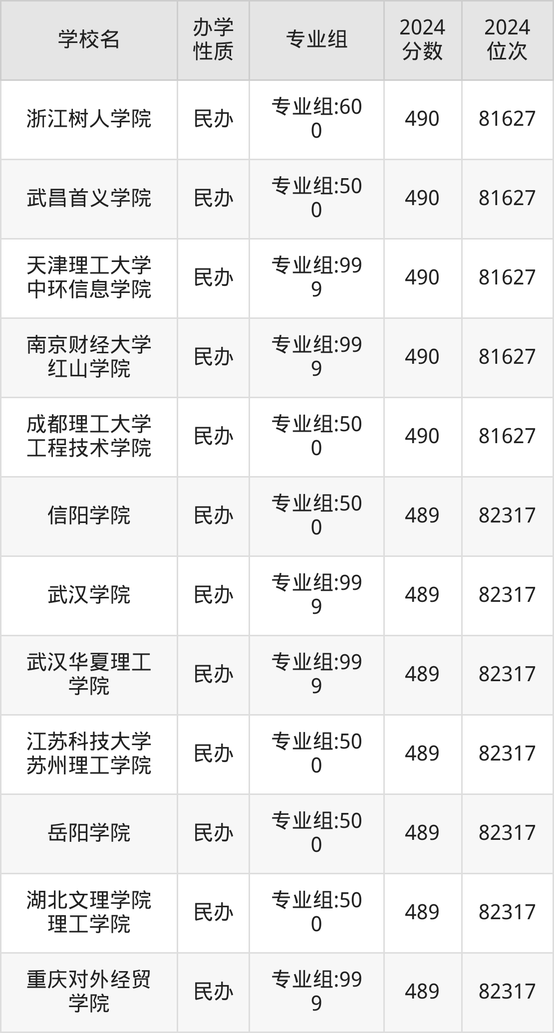 | 浙江师范大学 行知学院 | 专业组:50 0 | 490 | 81627 |