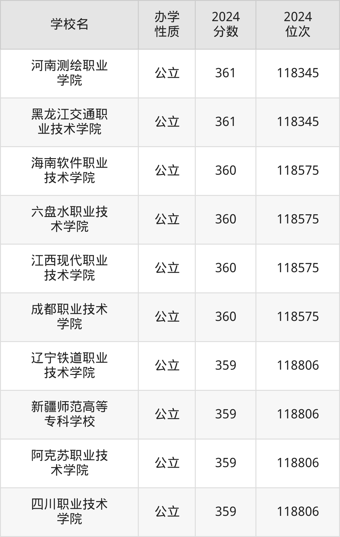 | 黑龙江交通职 业技术学院 | 361 | 118345 |