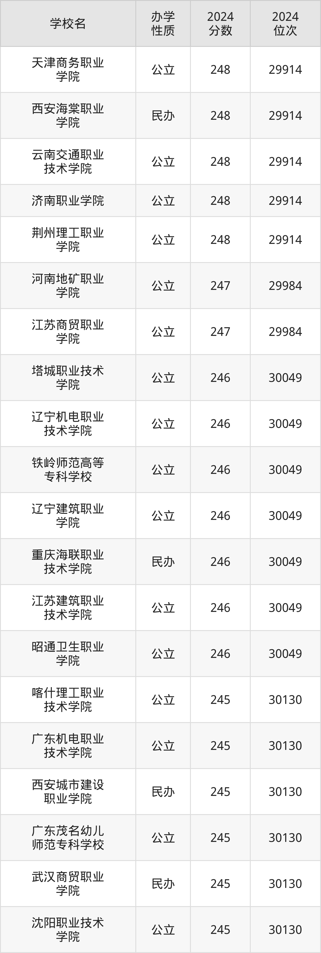 | 西安城市建设 职业学院 | 245 | 30130 |