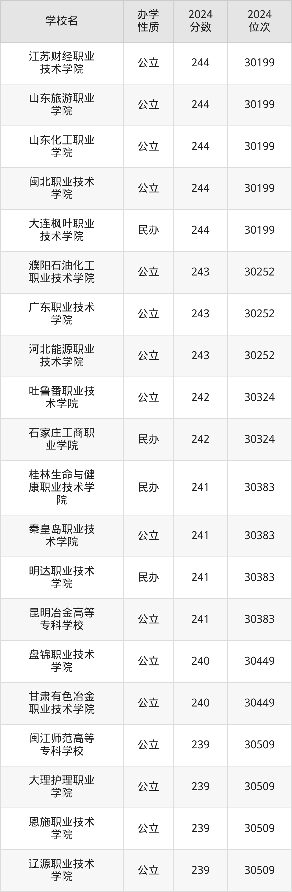 | 秦皇岛职业技 术学院 | 241 | 30383 |