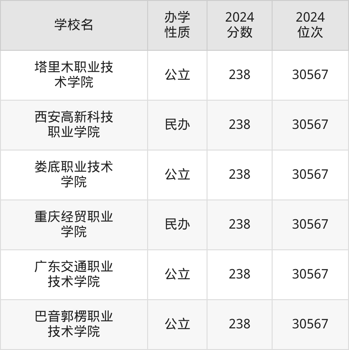 | 重庆经贸职业 学院 | 238 | 30567 |