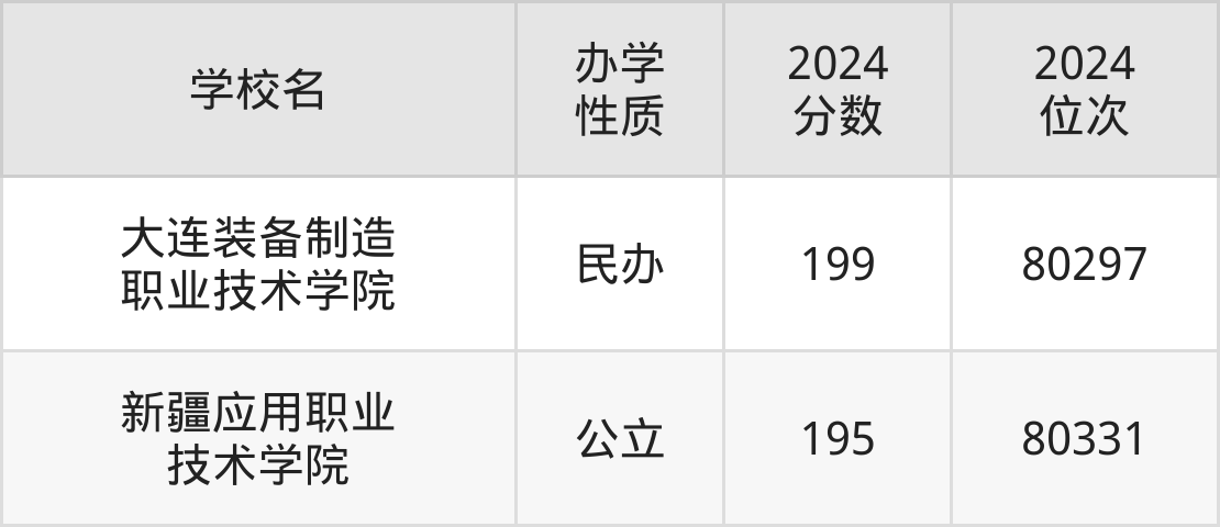 | 新疆应用职业 技术学院 | 195 | 80331 |