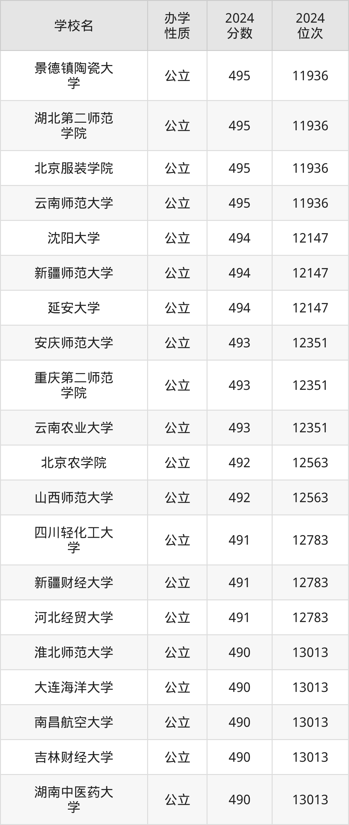 | 北京服装学院 | 495 | 11936 |