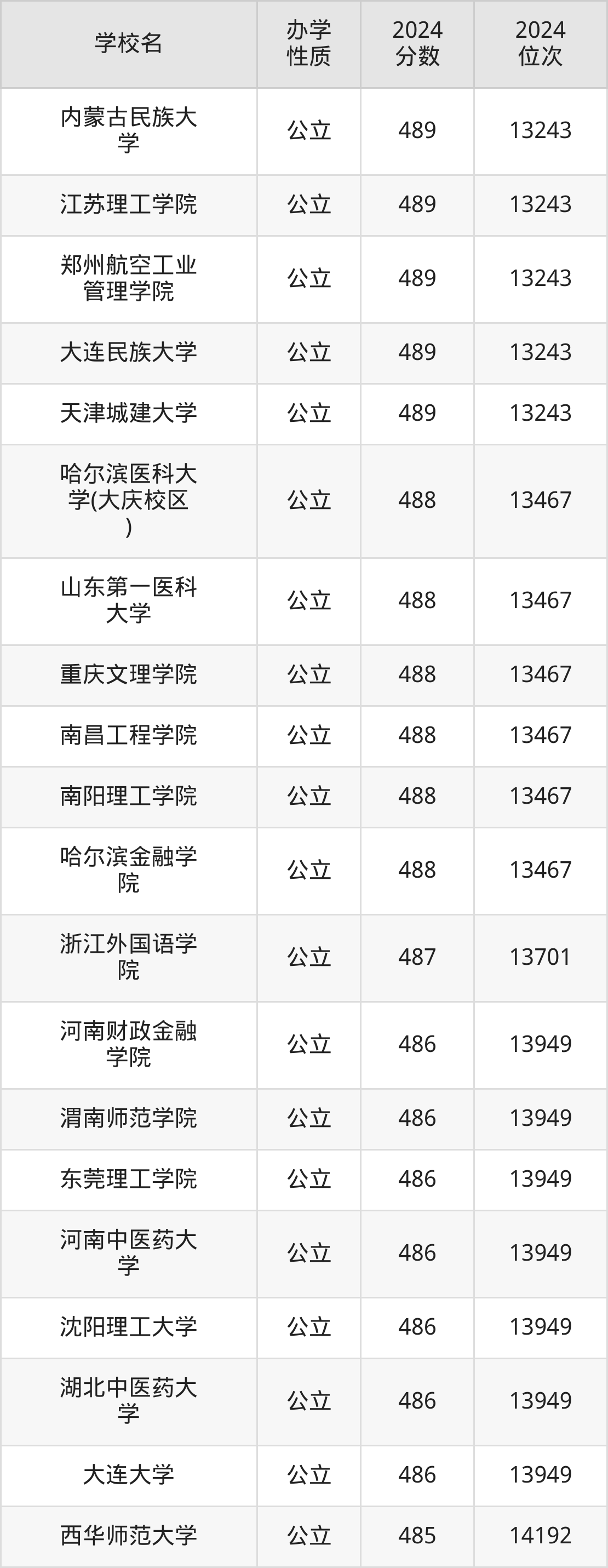 | 内蒙古民族大 学 | 489 | 13243 |