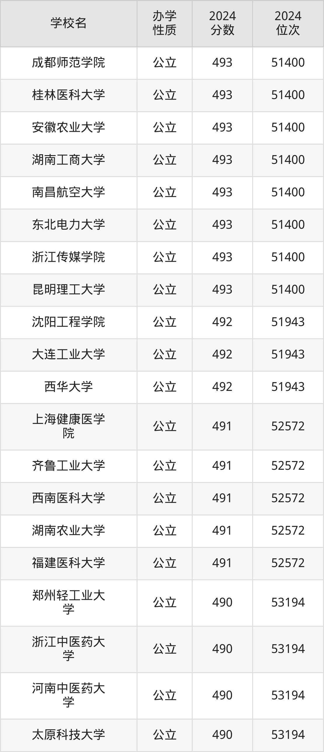 | 南昌航空大学 | 493 | 51400 |
