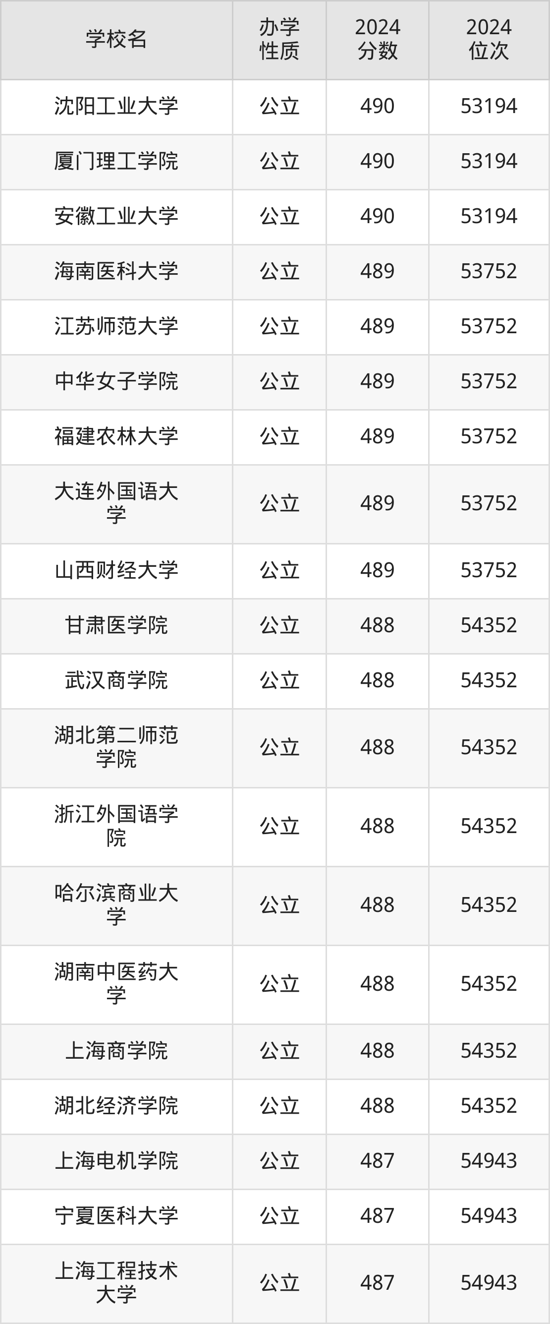 | 沈阳工程学院 | 492 | 51943 |