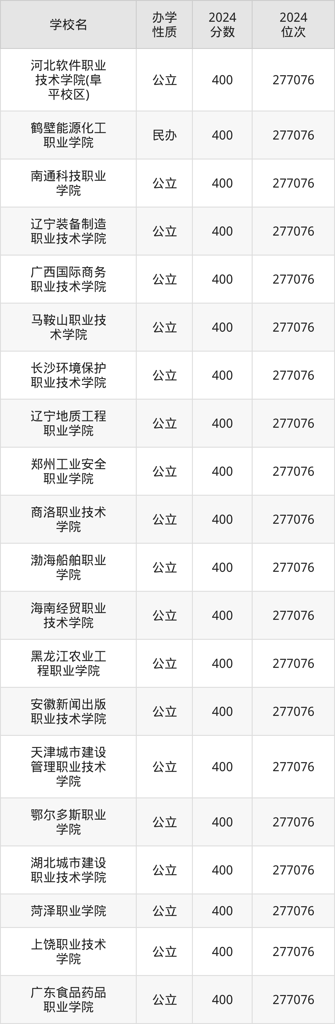 | 鹤壁能源化工 职业学院 | 400 | 277076 |
