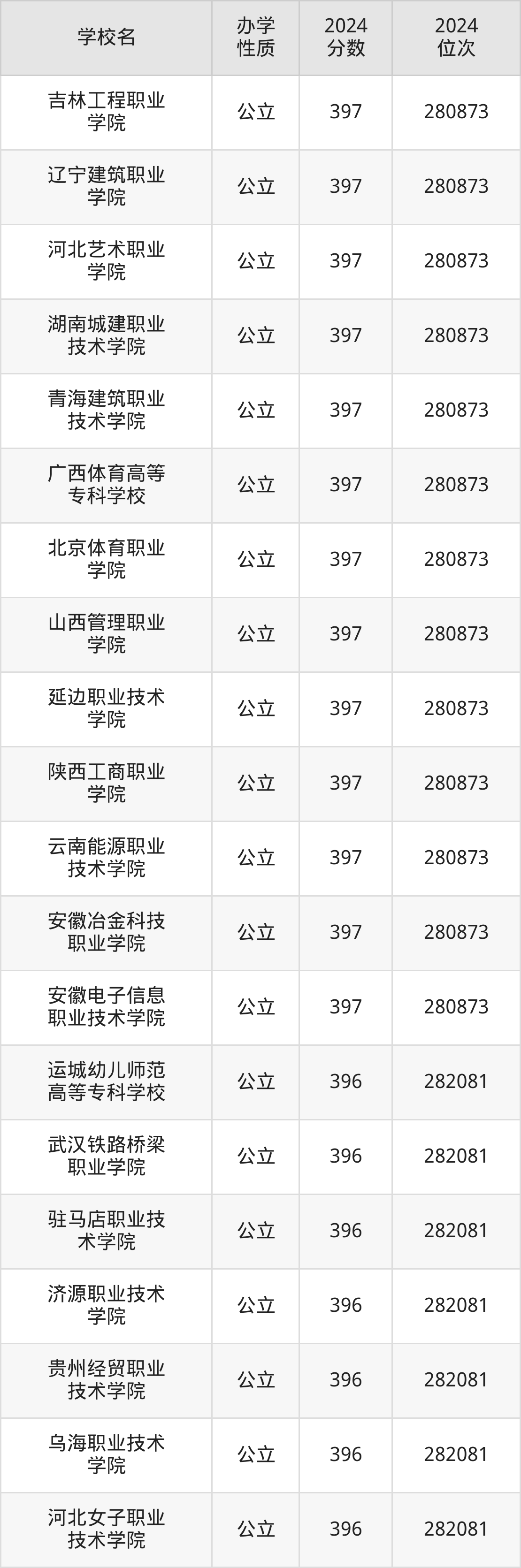 | 山西水利职业 技术学院 | 395 | 283332 |