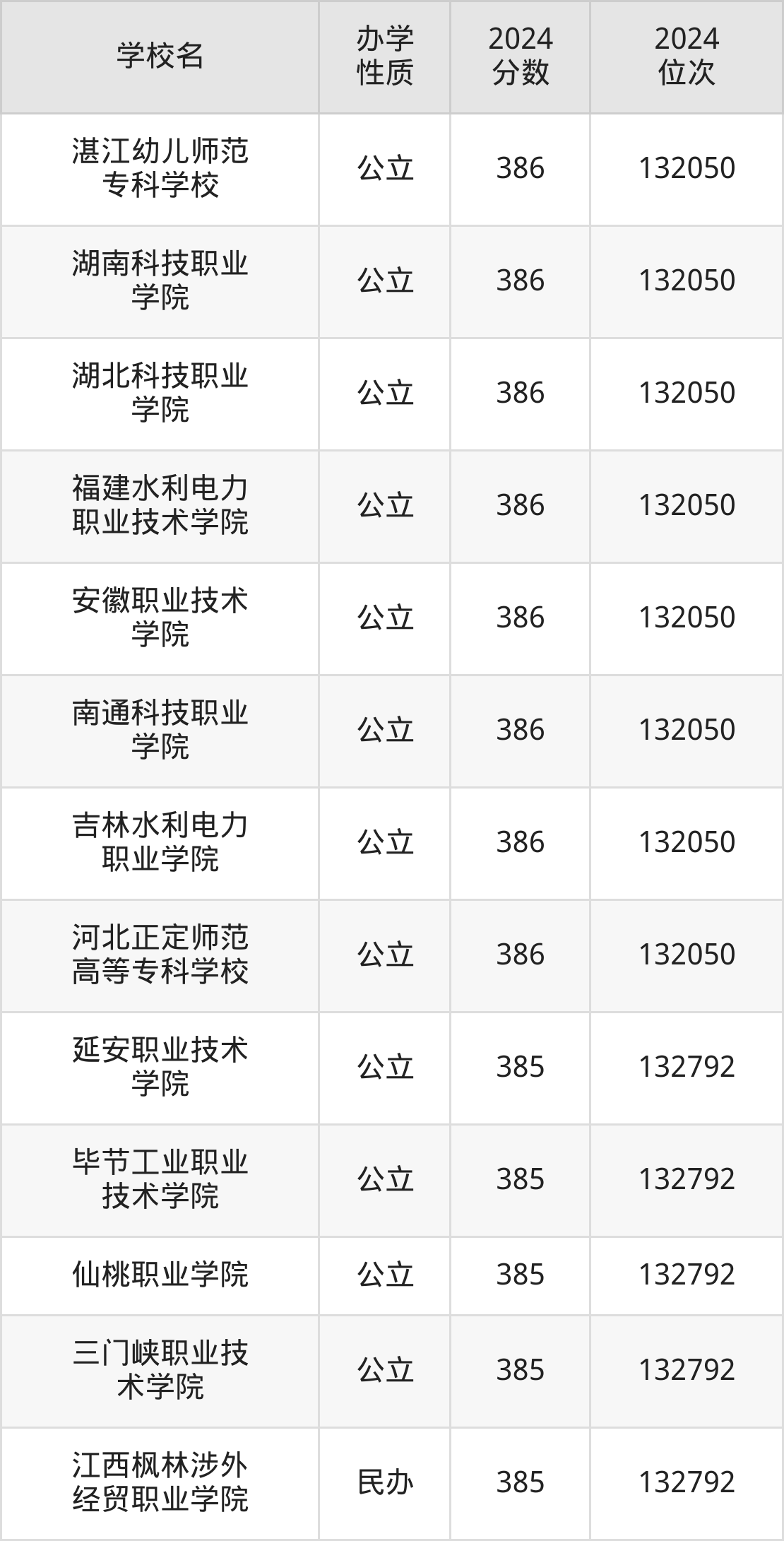 | 湖北科技职业 学院 | 386 | 132050 |