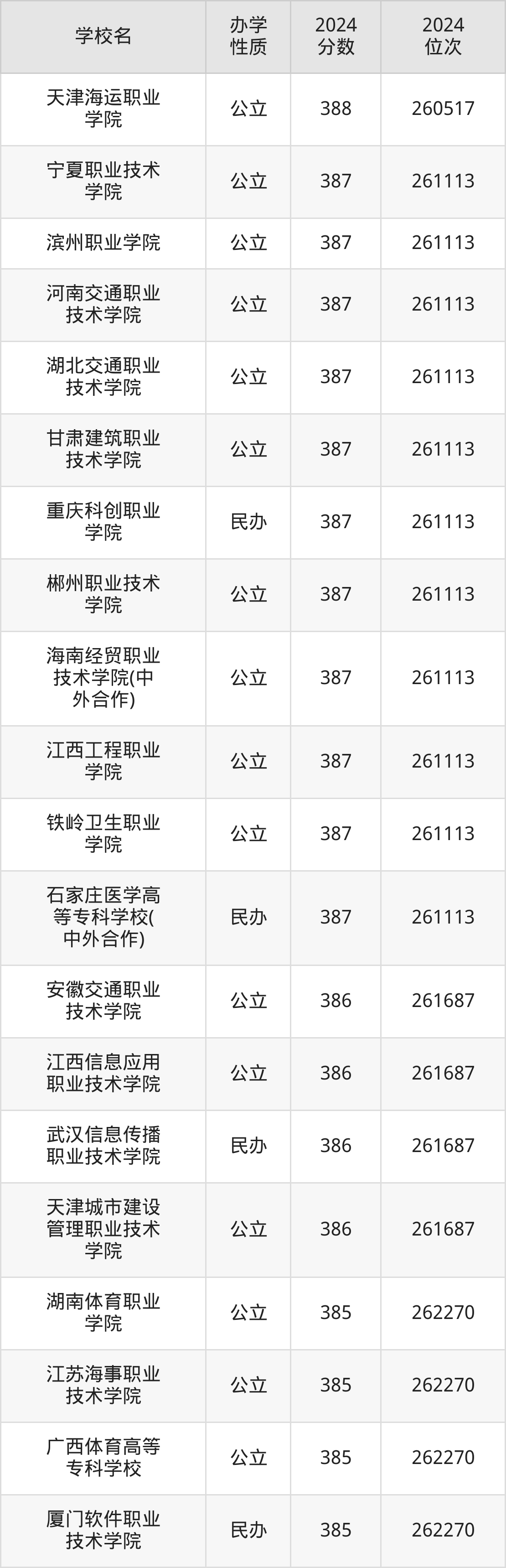 | 江西工程职业 学院 | 387 | 261113 |
