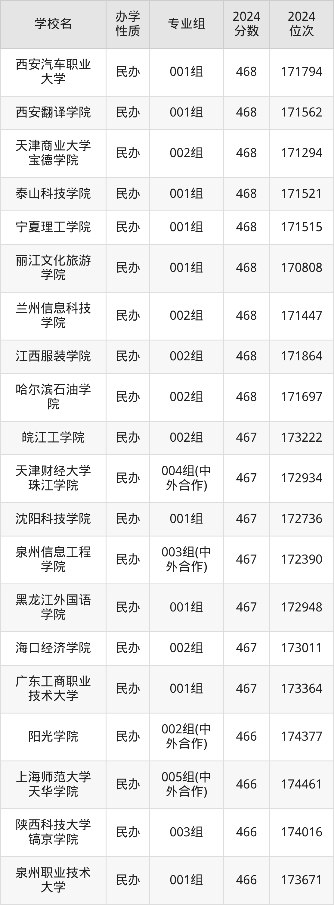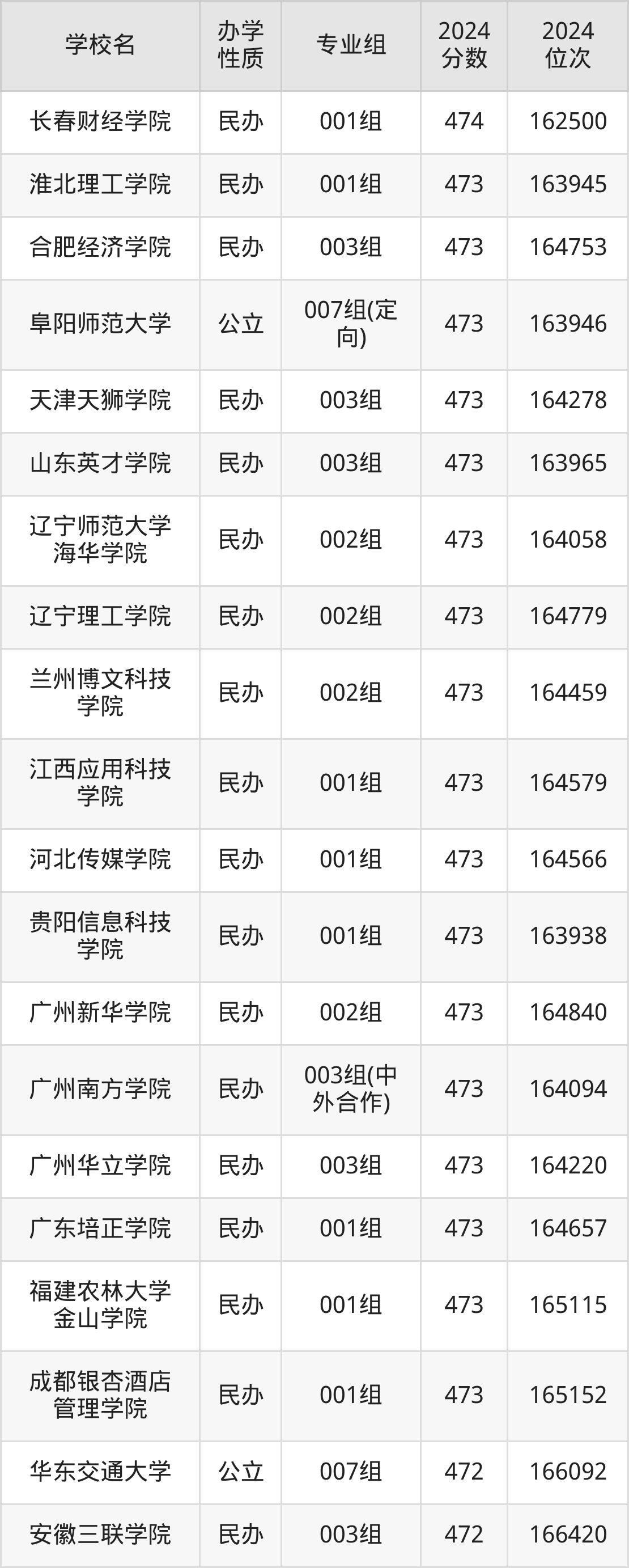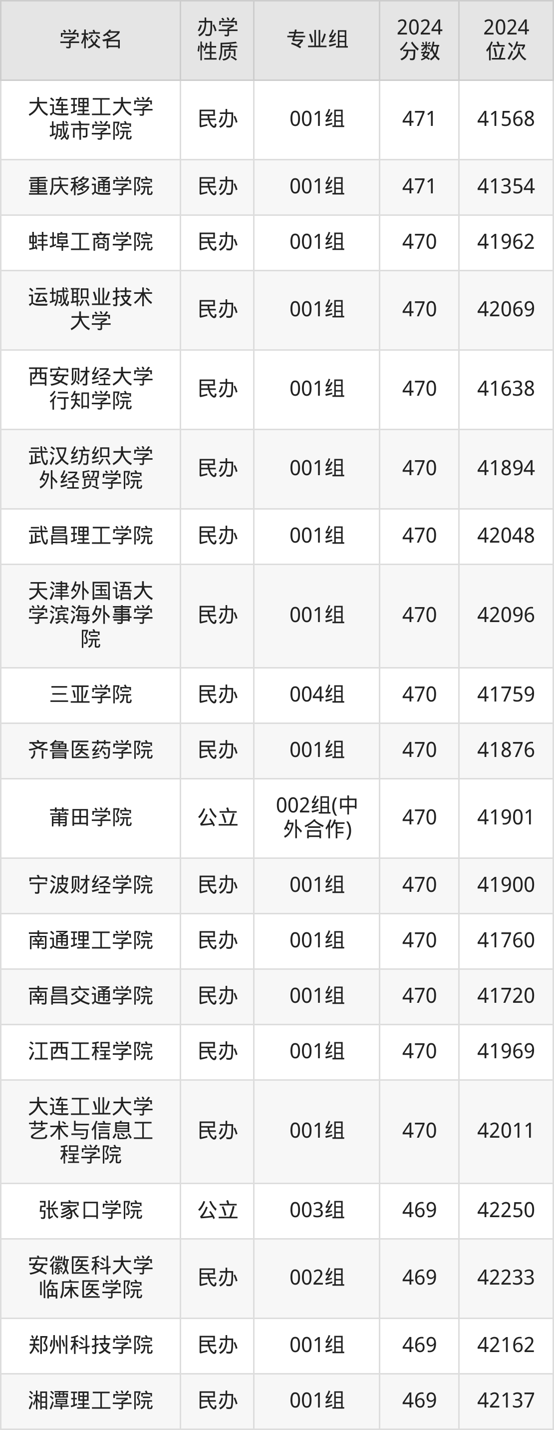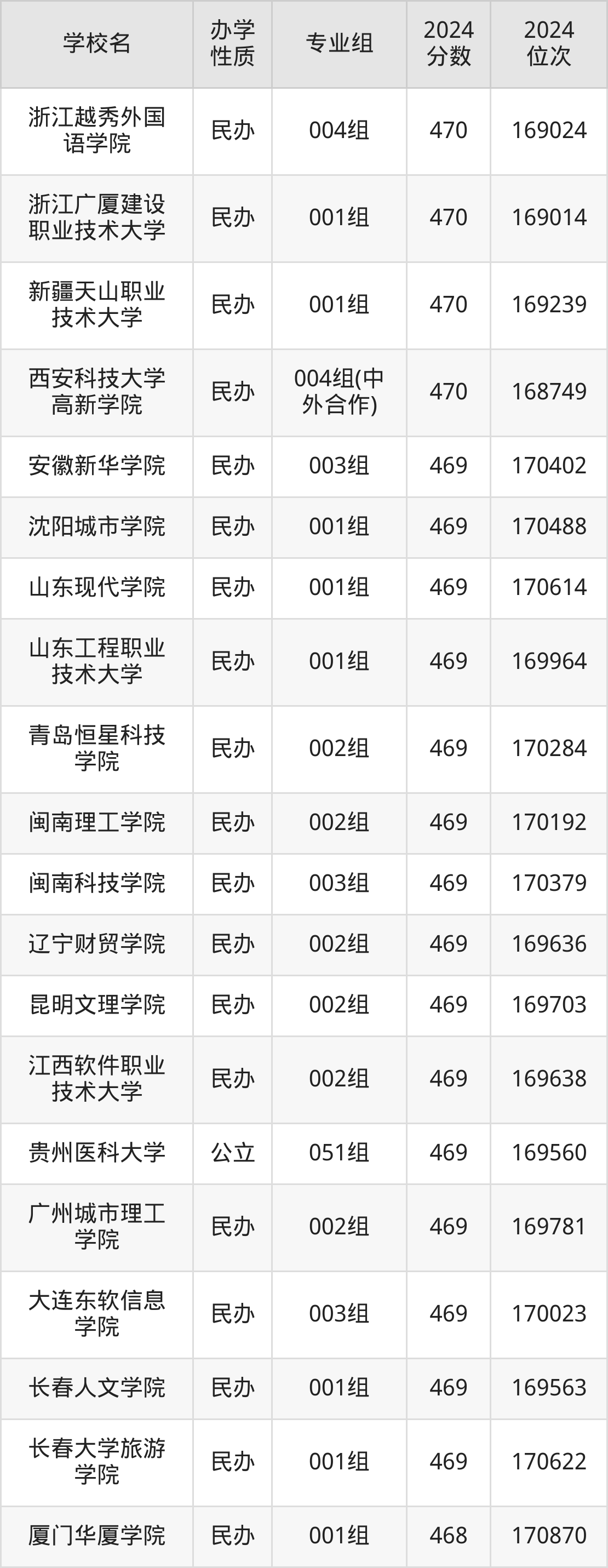 | 学校名 | 专业组 | 2024 分数 | 2024 位次 |
