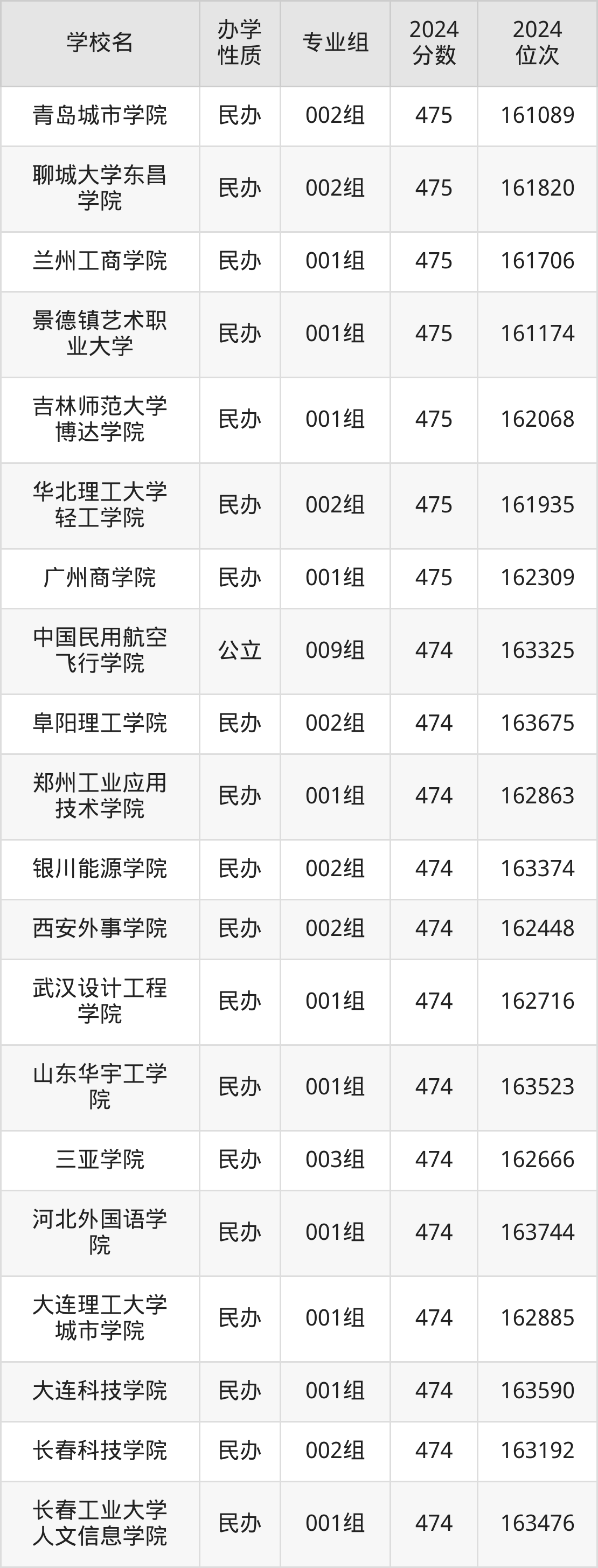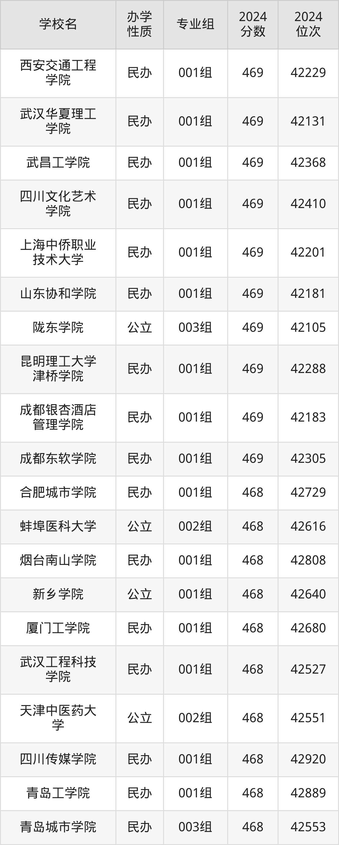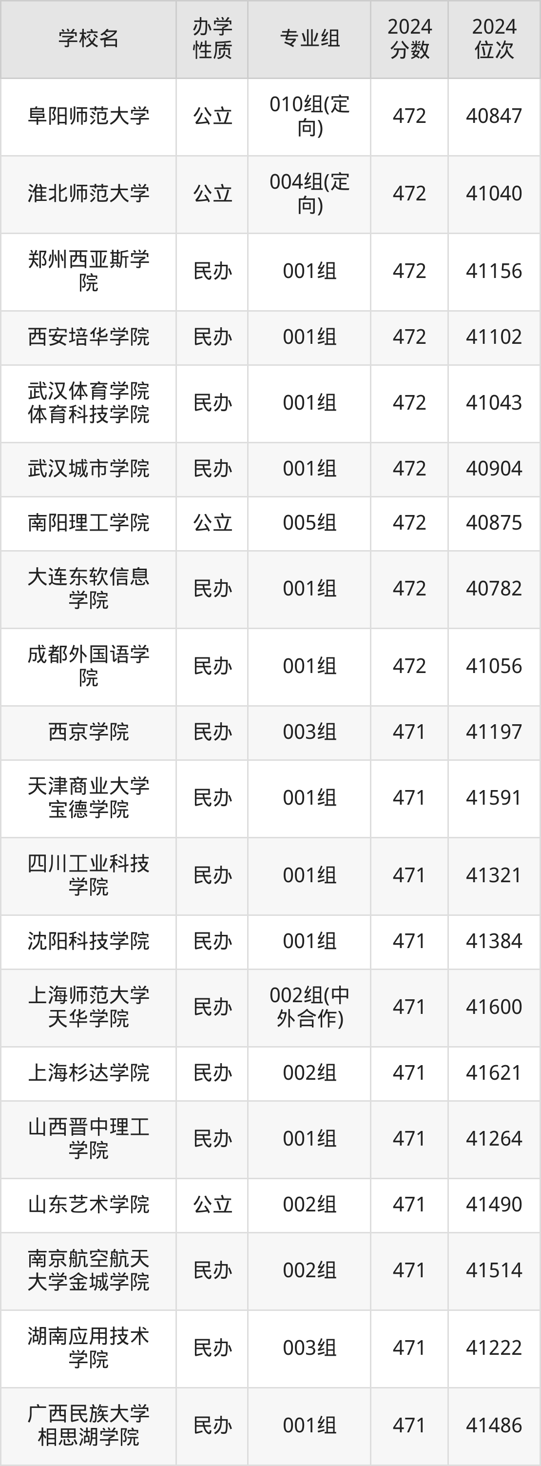 | 学校名 | 专业组 | 2024 分数 | 2024 位次 |