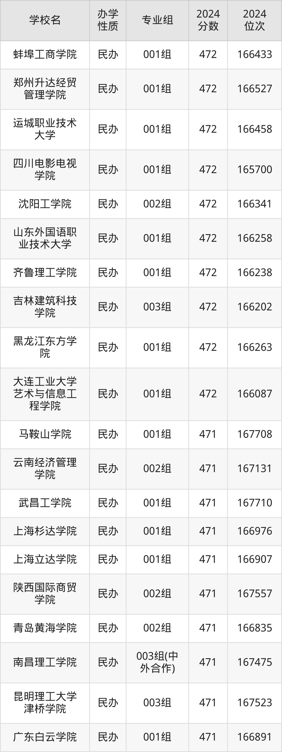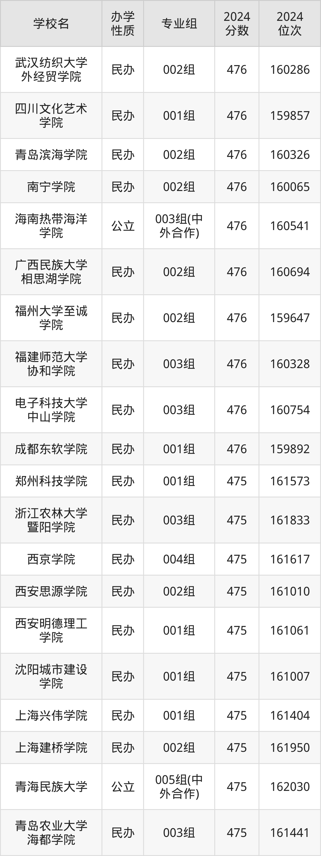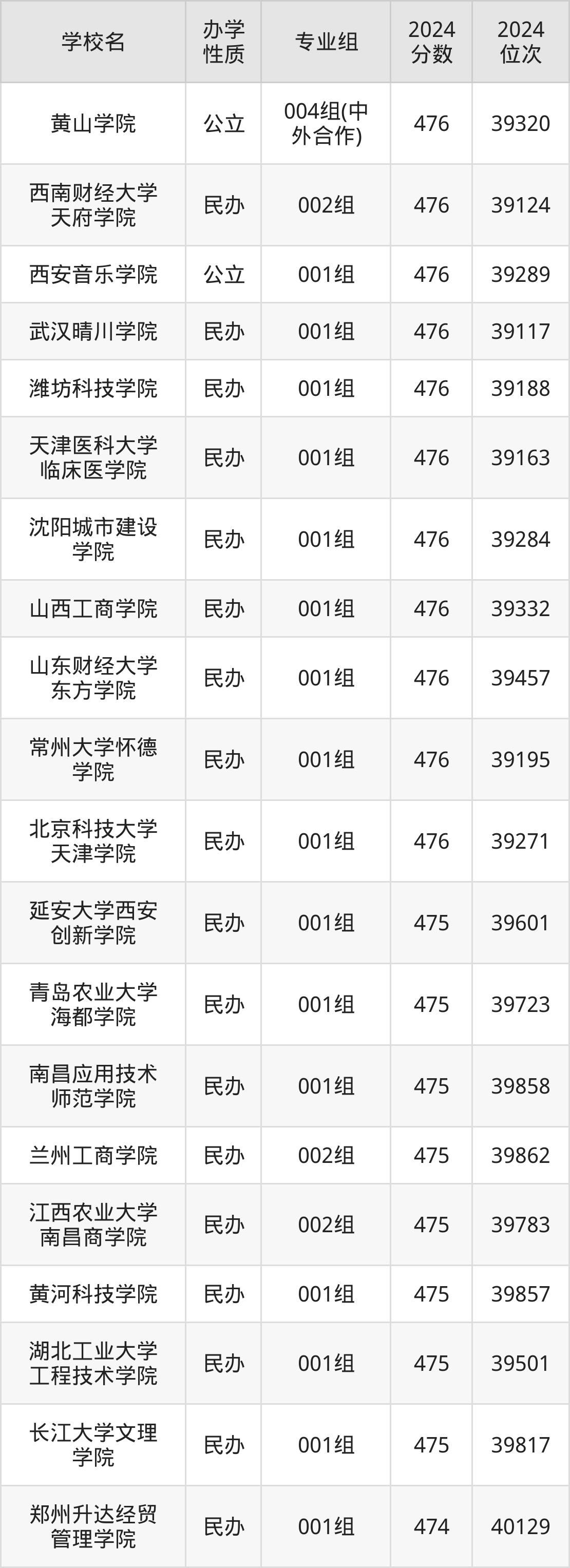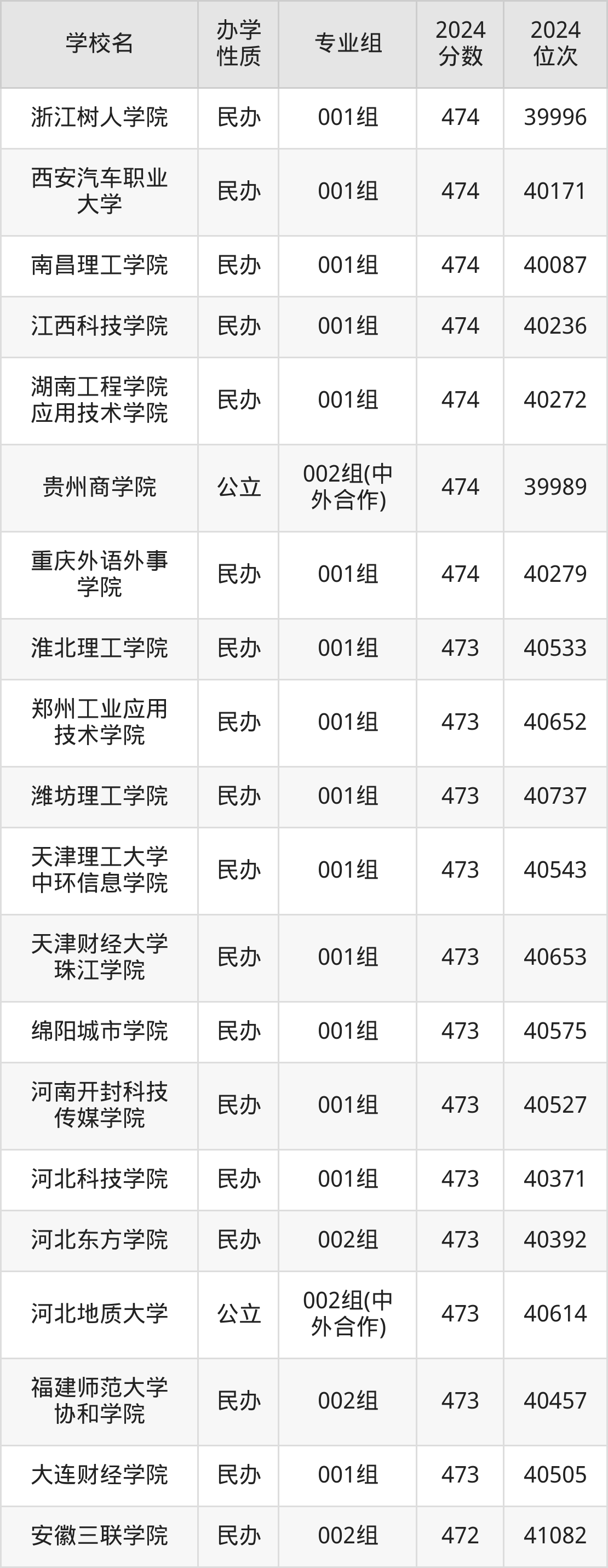 | 学校名 | 专业组 | 2024 分数 | 2024 位次 |