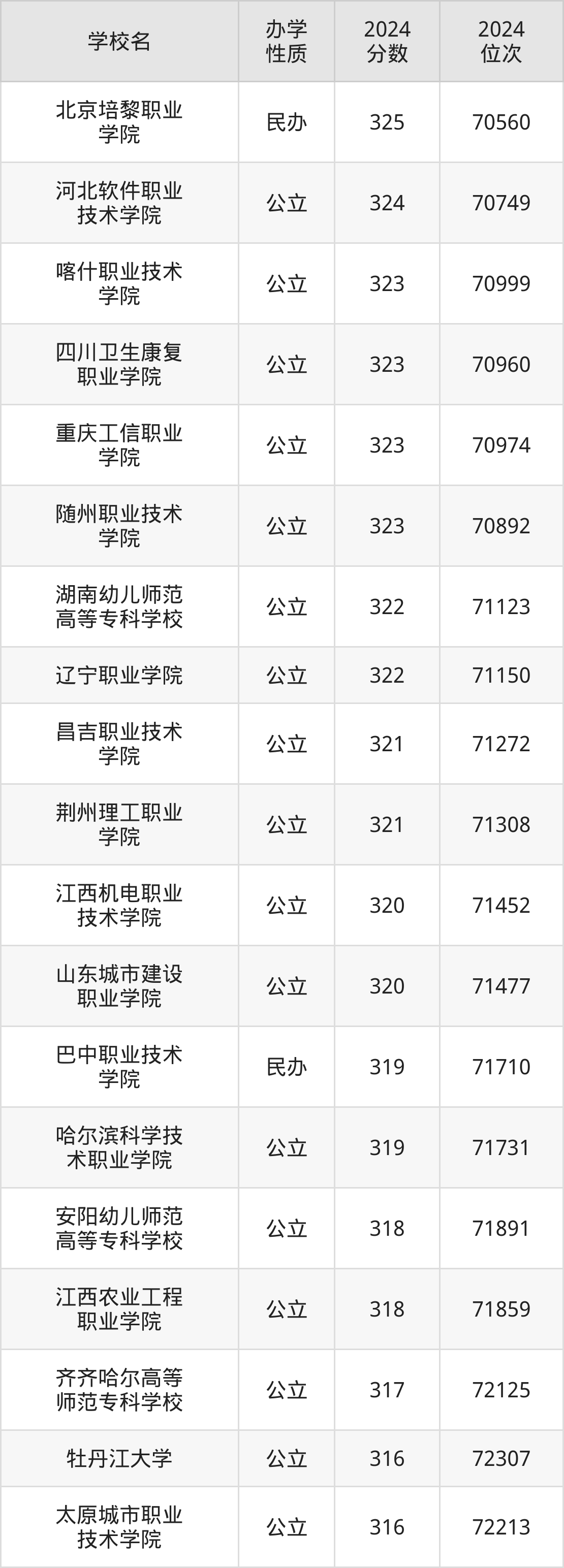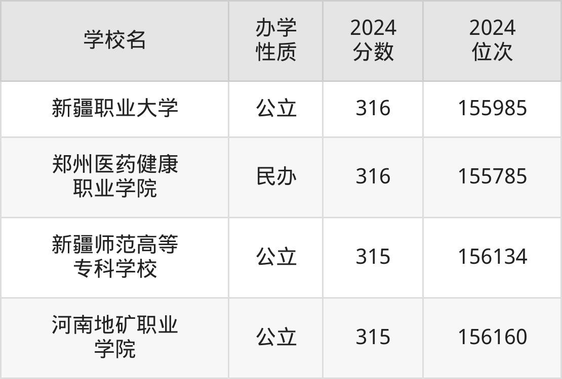 | 新疆职业大学 | 316 | 155985 |