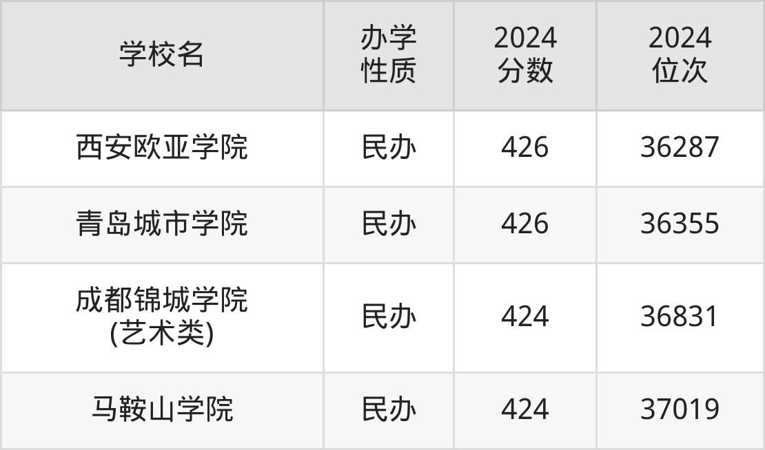 | 成都锦城学院 (艺术类) | 424 | 36831 |