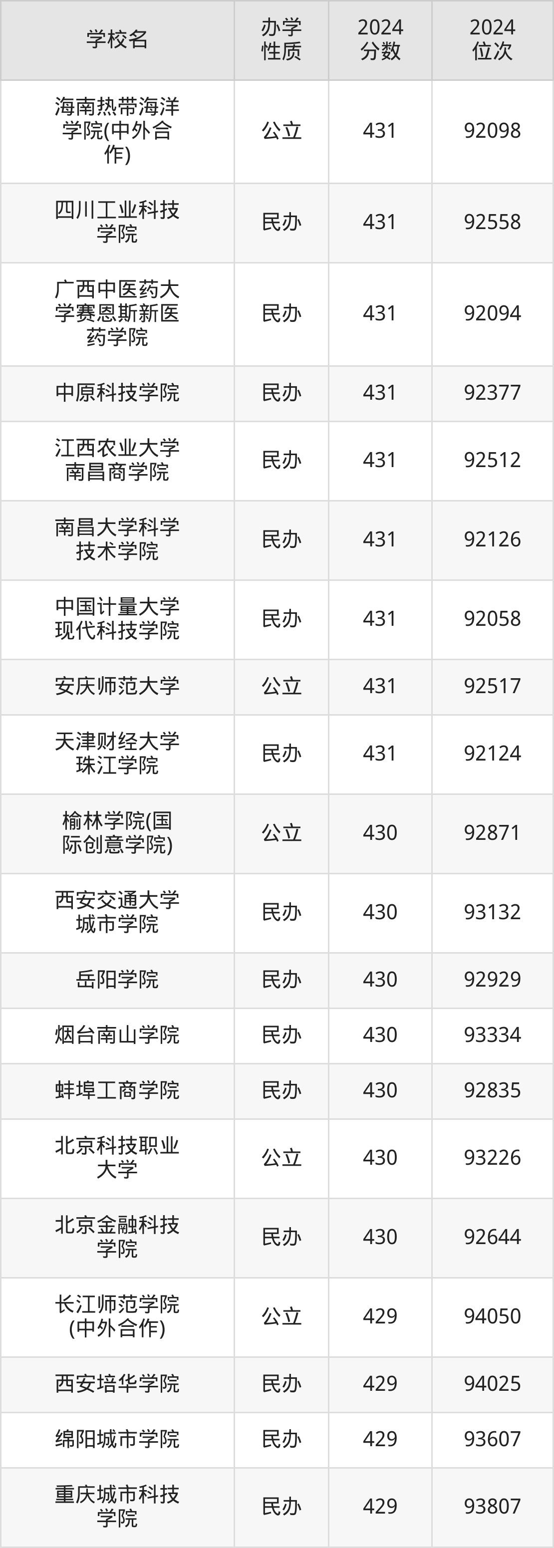 | 海南热带海洋 学院(中外合 作) | 431 | 92098 |