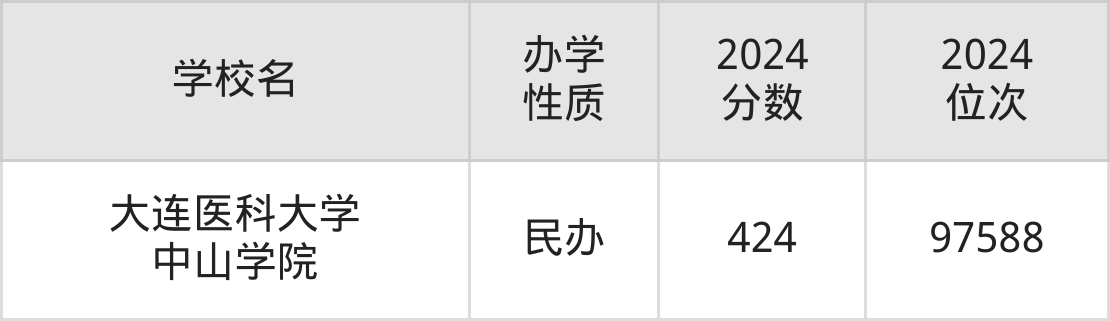 | 大连医科大学 中山学院 | 424 | 97588 |