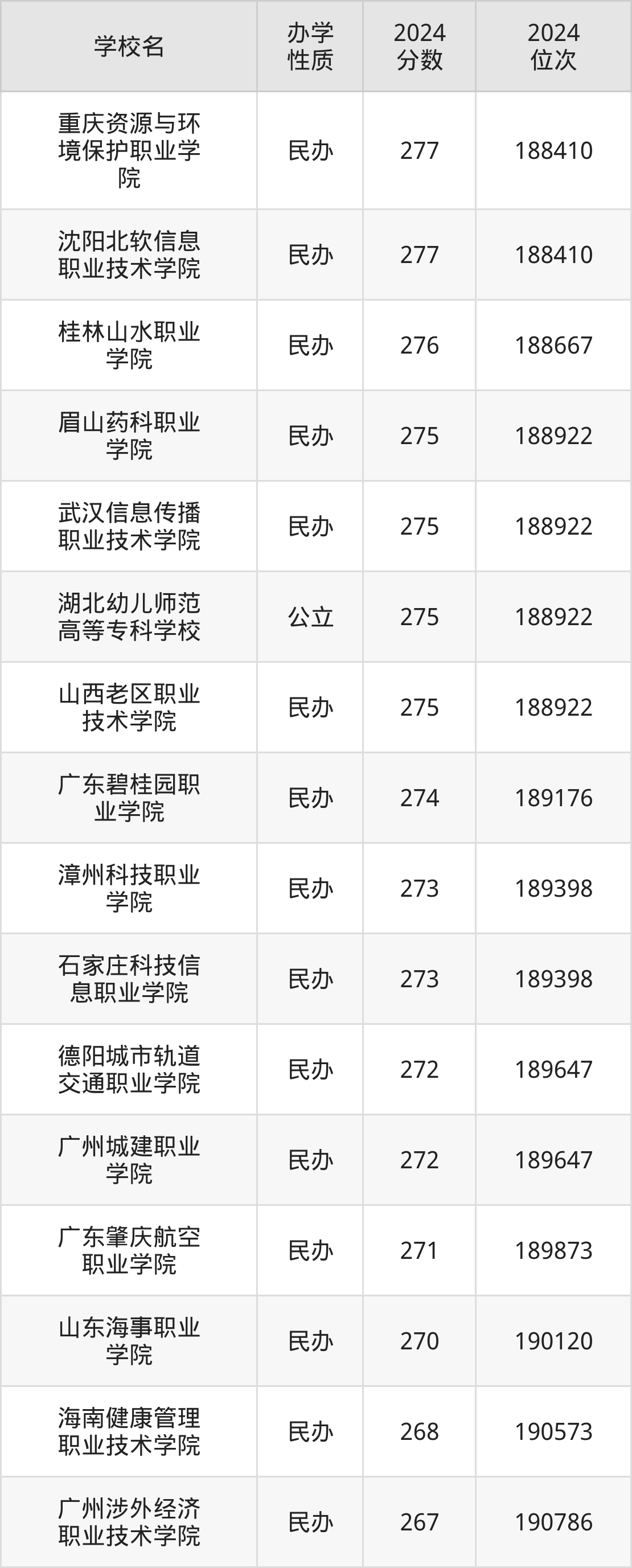 | 桂林山水职业 学院 | 276 | 188667 |