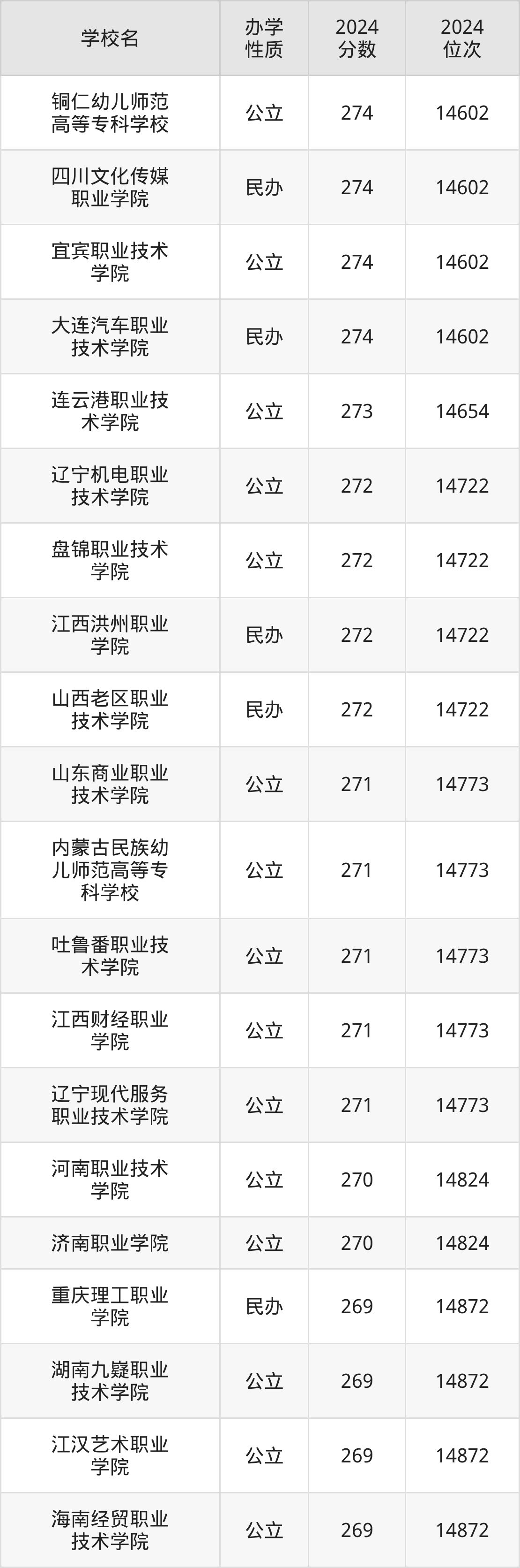 | 长春金融高等 专科学校 | 271 | 27685 |