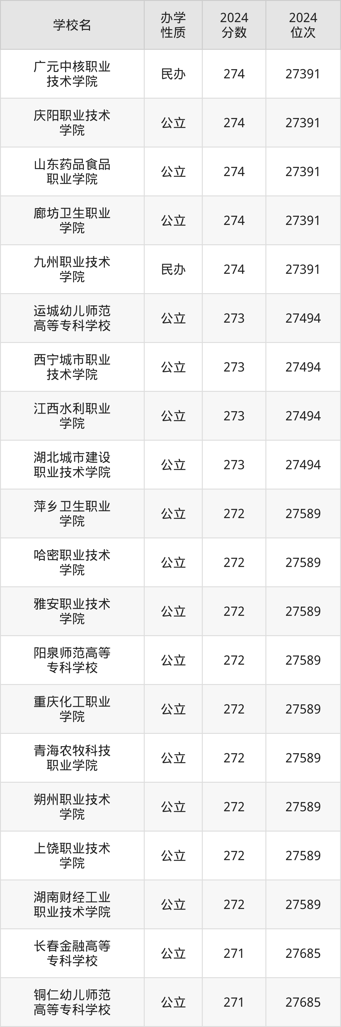 | 萍乡卫生职业 学院 | 272 | 27589 |