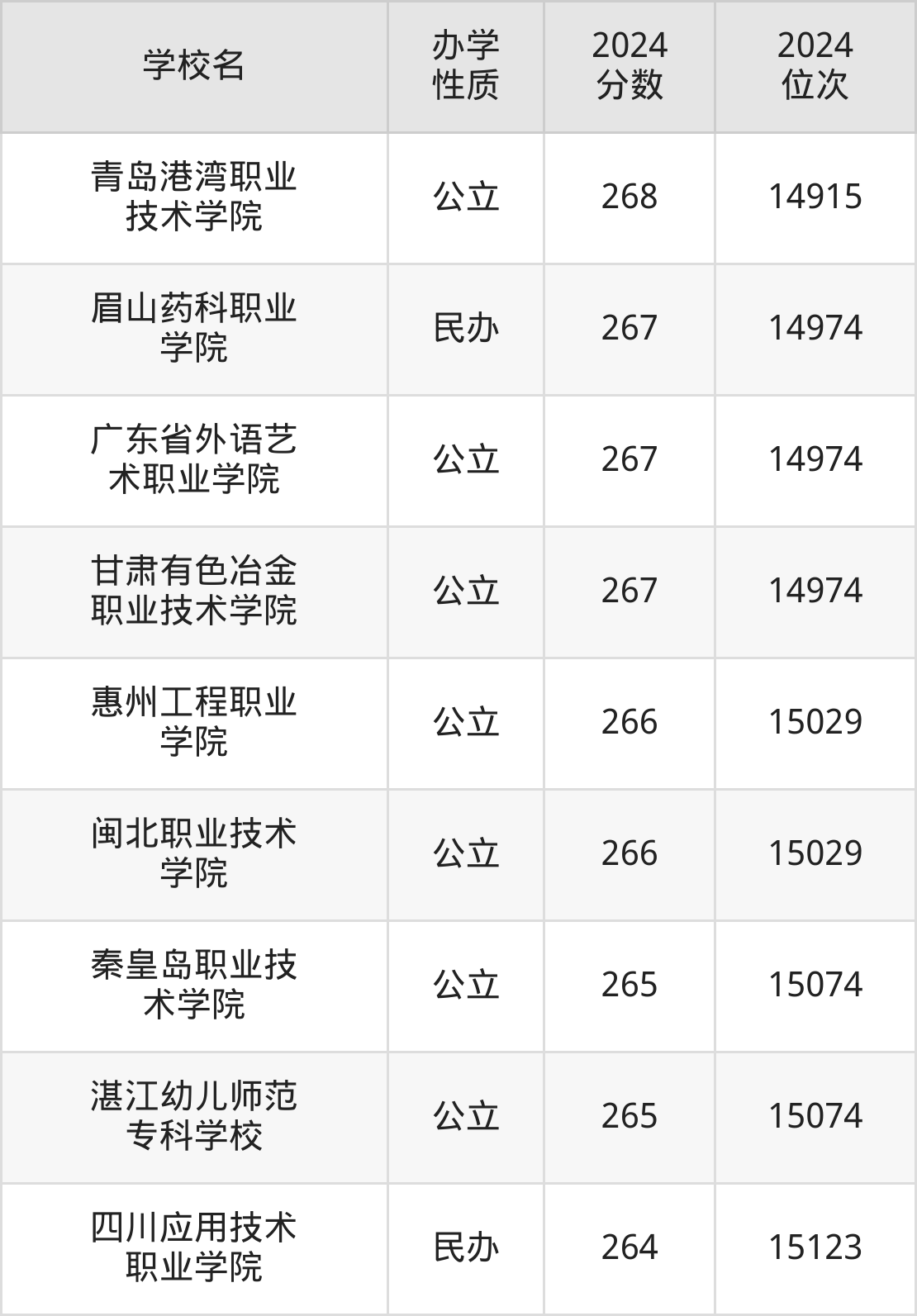 | 秦皇岛职业技 术学院 | 265 | 15074 |