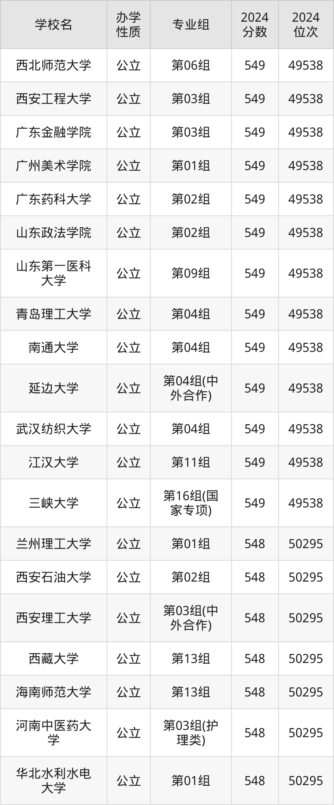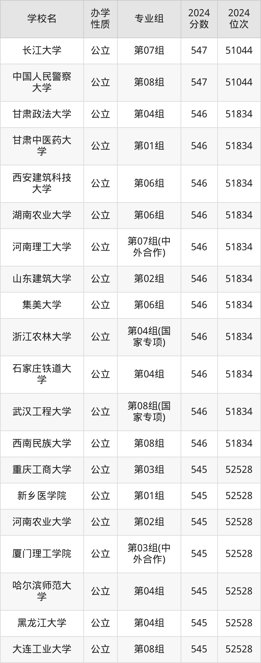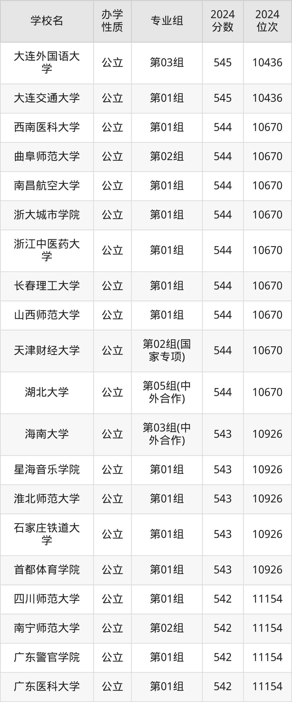 | 学校名 | 专业组 | 2024 分数 | 2024 位次 |