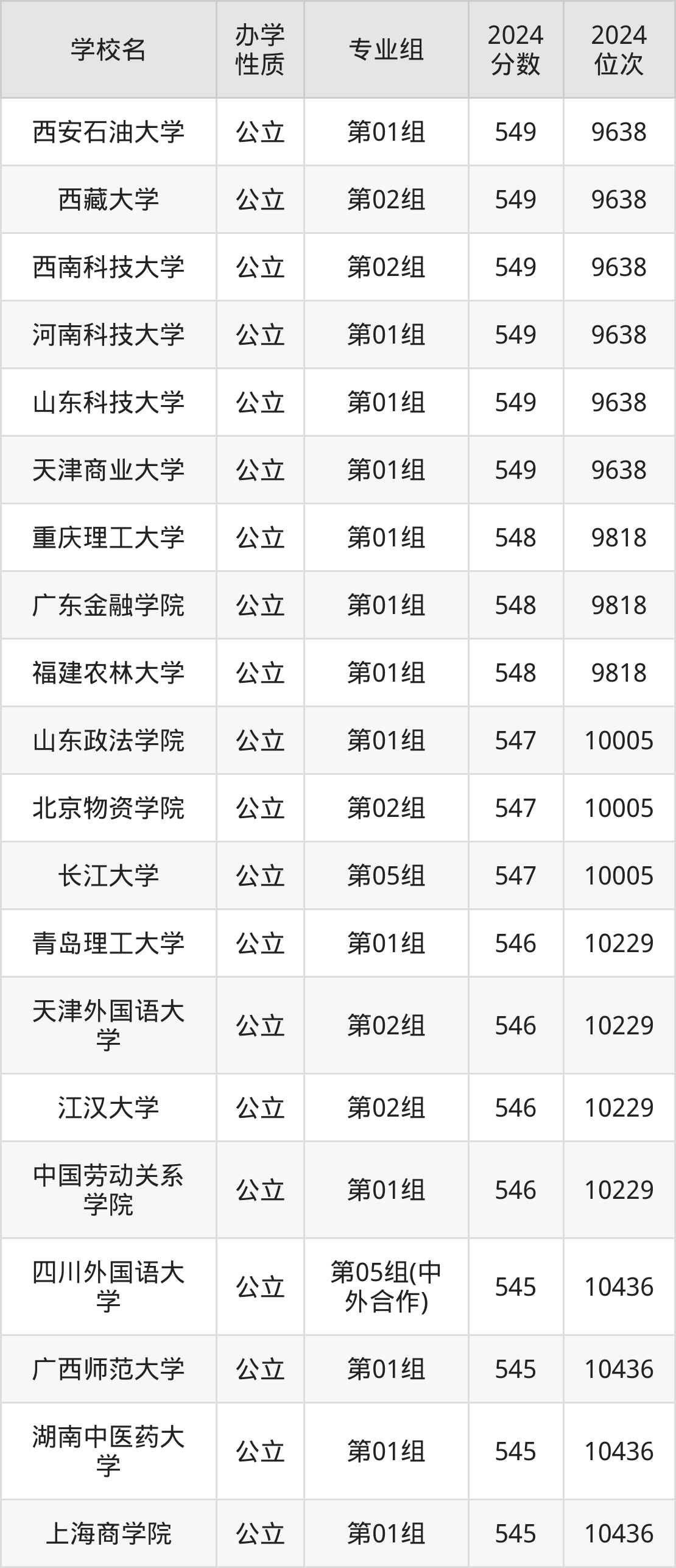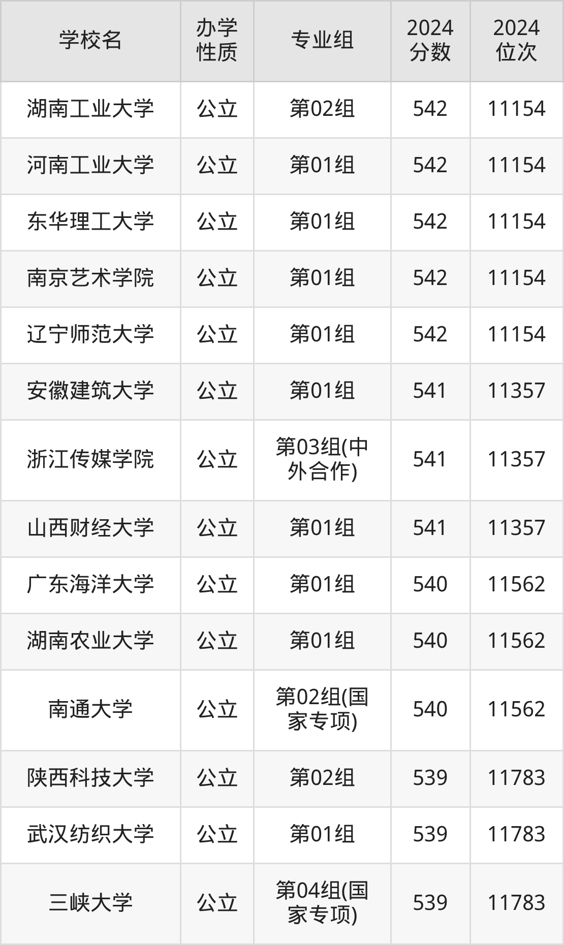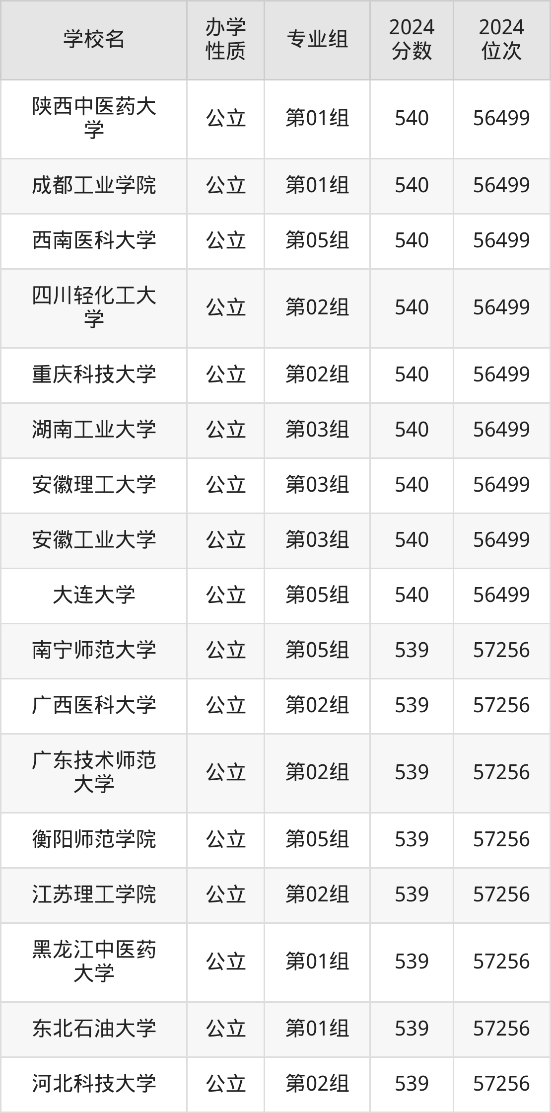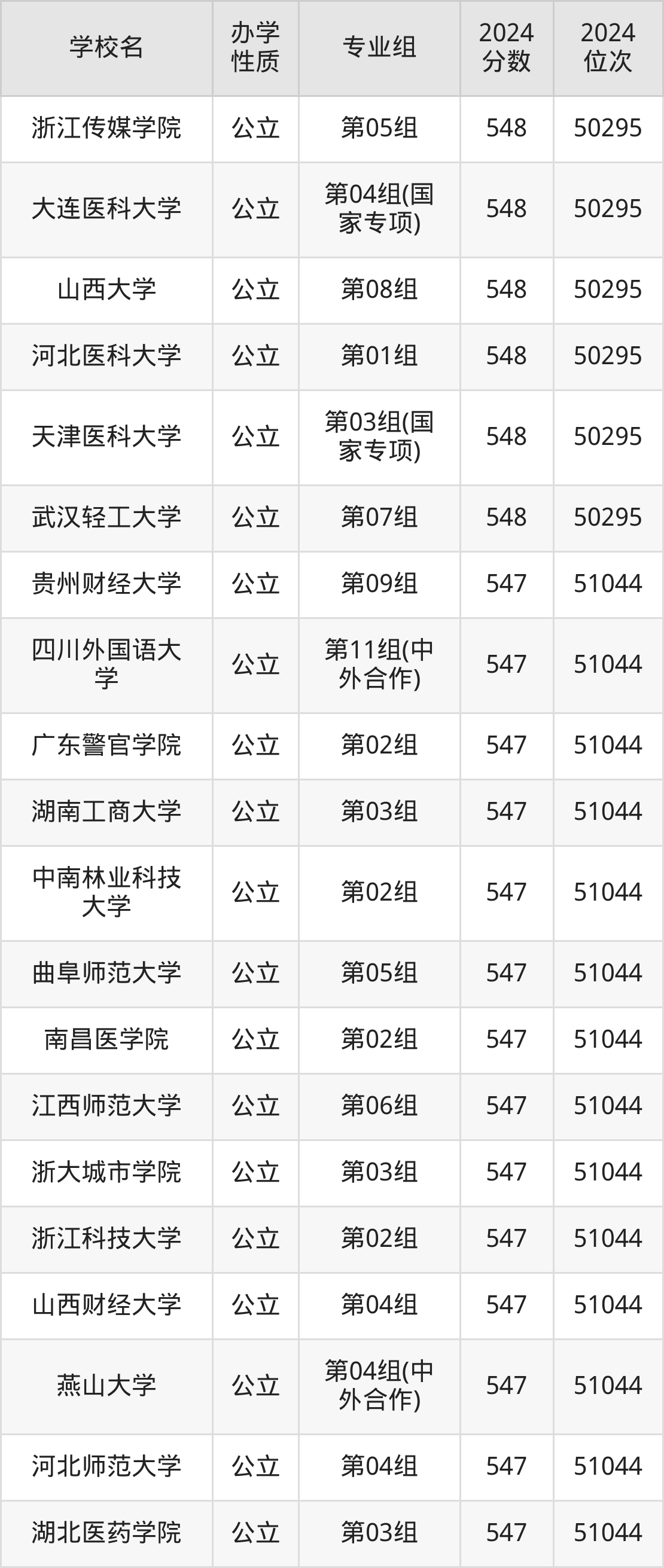 | 学校名 | 专业组 | 2024 分数 | 2024 位次 |