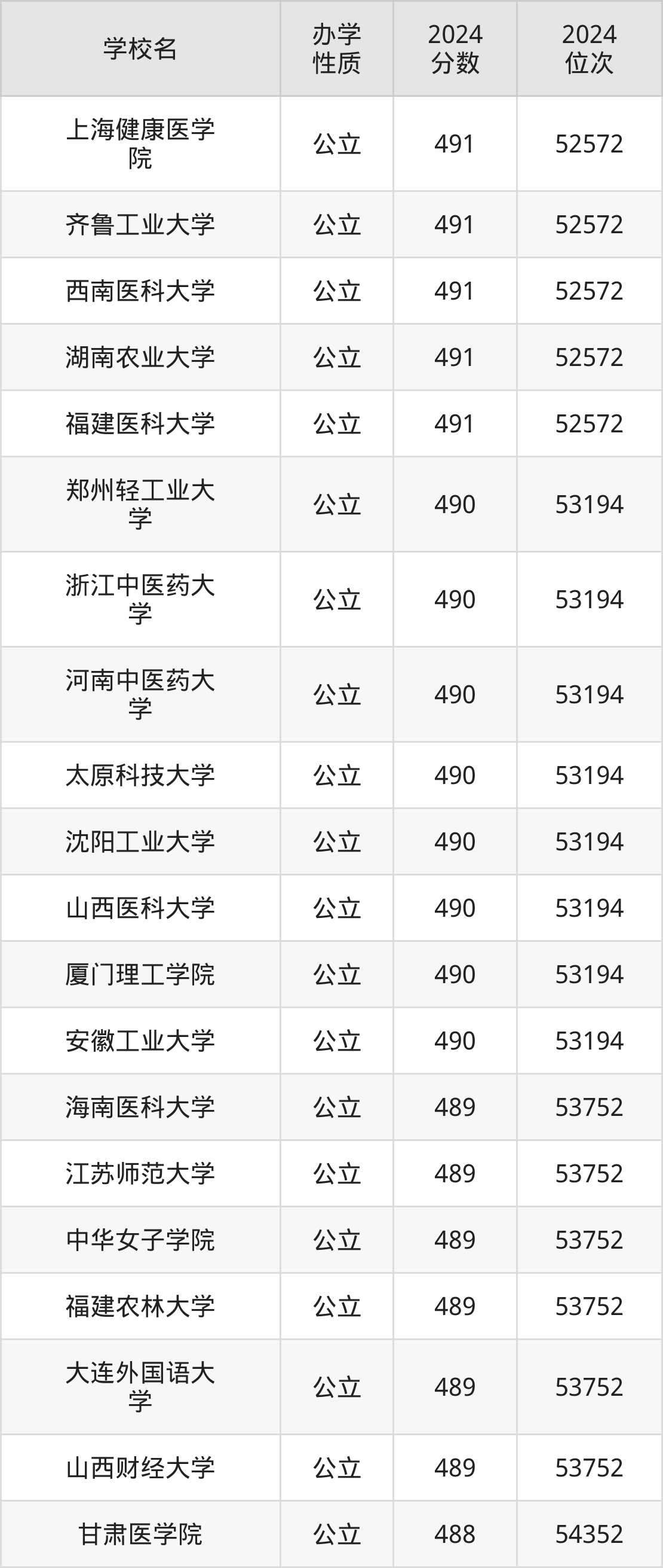 | 山西医科大学 | 490 | 53194 |